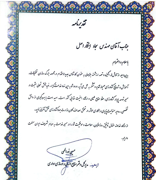 به گزارش روابط‌عمومی مرکز تحقیقات و آموزش کشاورزی و منابع طبیعی استان بوشهر، سجاد ابتکاراصل، کارشناس جنگل و مرتع این مرکز، در دوره کارورزی و ارزشیابی برگزارشده در شهرستان کردکوی استان گلستان موفق شد عنوان نفر برتر را کسب کند و از سوی حسین نوراللهی، مدیرکل دفتر منابع انسانی و نوسازی اداری سازمان تات، مورد تقدیر قرار گیرد.