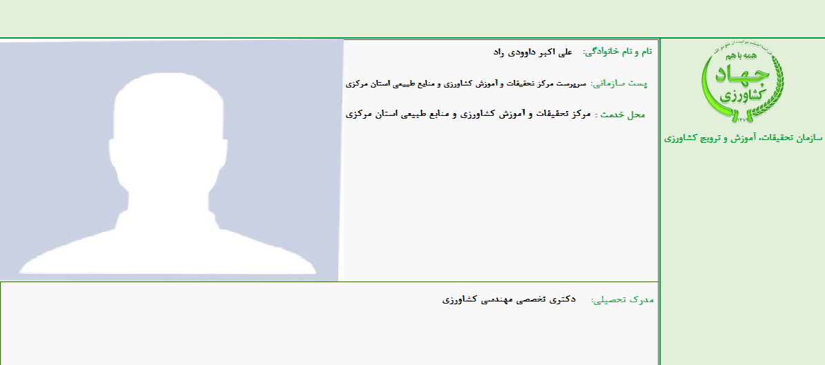 علی اکبر داوودی راد - دکتری تخصصی مهندسی کشاورزی سرپرست مرکز تحقیقات و آموزش کشاورزی و منابع طبیعی استان مرکزی