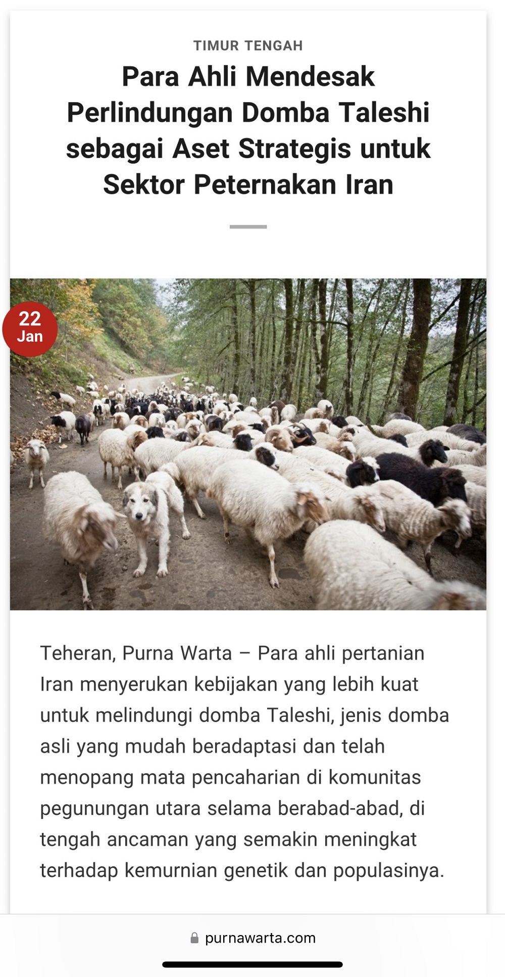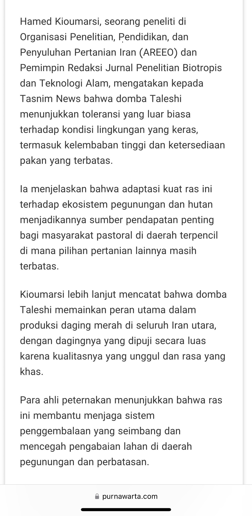 به گزارش روابط عمومی مرکز تحقیقات و آموزش کشاورزی و منابع طبیعی گیلان؛ مصاحبهای با حامد کیومرثی، از همکاران خبره مرکز؛ در یکی از نشریات ملی کشور اندونزی منتشر شده است. این گفتوگوی ارزشمند که به زبان اندونزیایی تهیه و به چاپ رسیده، به طور گسترده به بررسی ابعاد مختلف توسعه پرورش دام، با تمرکز ویژه بر گوسفندداری، در این کشور پرداخته است.