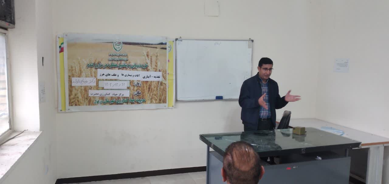 در این کارگاه همچنین رضائیارشد به تشریح اصول علمی و کاربردی تغذیه گندم آبی پرداخت و مهمترین نیازهای غذایی این محصول در مراحل مختلف رشد را مورد بررسی قرار داد. مدیریت بهینه مصرف کودهای ماکرو و میکرو، زمانبندی صحیح تغذیه، نقش عناصر غذایی در افزایش عملکرد و بهبود کیفیت محصول از جمله محورهای مطرحشده در این دوره آموزشی بود.