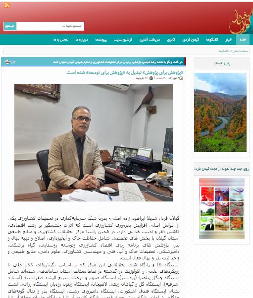 به گزارش روابط عمومی مرکز تحقیقات و آموزش کشاورزی و منابع طبیعی گیلان؛ در مصاحبه اختصاصی ماهنامه «گیلان فردا»، محمدرضا عباسی مژدهی، رئیس مرکز؛ با نگاهی آیندهنگرانه به چالشها و فرصتهای بخش کشاورزی استان گیلان پرداخت.