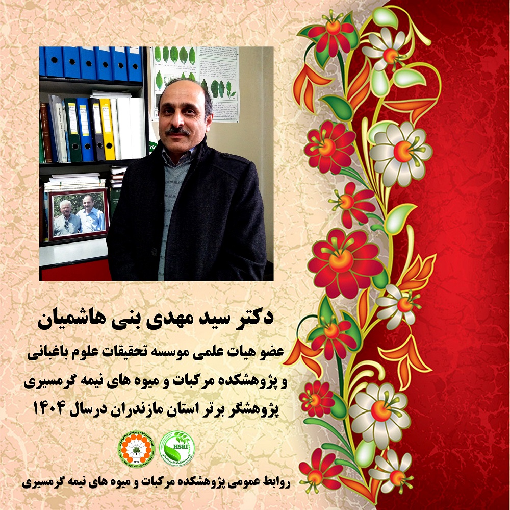 در آیین گرامیداشت هفته پژوهش و فناوری استان مازندران، که در دانشگاه مازندران برگزار شد، از دکتر سید مهدی بنی‌هاشمیان عضو هیات علمی پژوهشکده مرکبات و میوه‌های نیمه‌گرمسیری به عنوان پژوهشگر برتر استان تقدیر شد.
