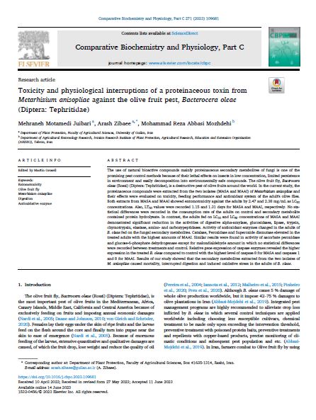 به گزارش روابط عمومی مرکز تحقیقات و آموزش کشاورزی ومنابع طبیعی گیلان؛ در پژوهشی نوآورانه که در نشریه علمی معتبر Comparative Biochemistry and Physiology منتشر شده، تیمی از پژوهشگران موفق شدند با استفاده از ترکیبات پروتئینی استخراج‌شده از قارچ Metarhizium anisopliae، تأثیرات کشنده‌ای بر مگس زیتون (Bactrocera oleae) ایجاد کنند؛ آفتی که سالانه خسارات سنگینی به باغ‌های زیتون در ایران و جهان وارد می‌کند.