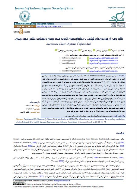 به گزارش روابط عمومی مرکز تحقیقات و آموزش کشاورزی ومنابع طبیعی گیلان؛ مجله انجمن حشره‌شناسی ایران در شماره جدید خود نتایج پژوهشی را منتشر کرده است که به بررسی تأثیر هورمون‌های گیاهی بر کاهش خسارت آفت مگس میوه زیتون پرداخته است؛