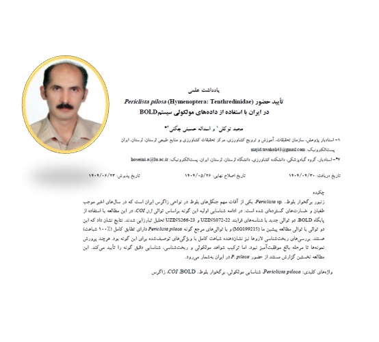 چاپ مقاله با عنوان: تأیید حضور زنبور برگخوار بلوط Periclista pilosa (Hymenoptera: Tenthredinidae) در ایران با استفاده از دادههای مولکولی سیستم BOLD