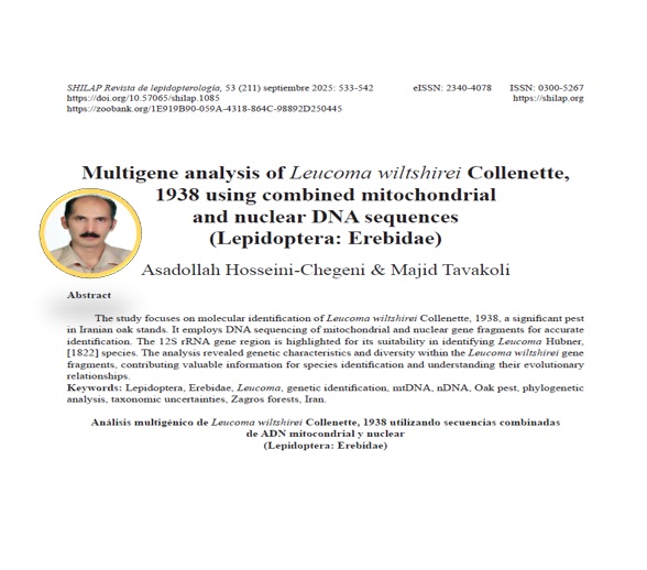 چاپ مقاله با عنوان: Multigene analysis of Leucoma wiltshirei Collenette, ۱۹۳۸ using combined mitochondrial and nuclear DNA sequences (Lepidoptera: Erebidae)