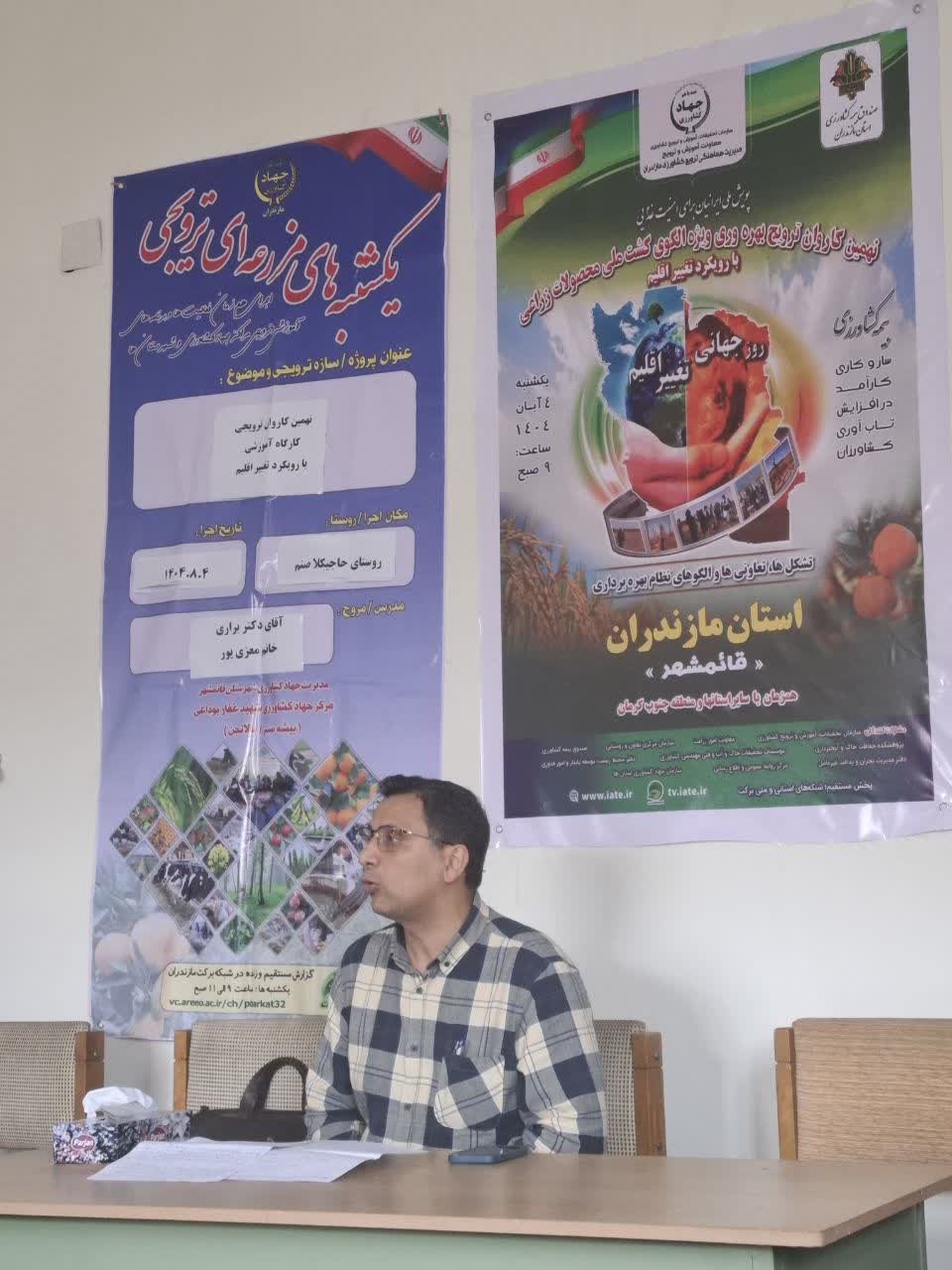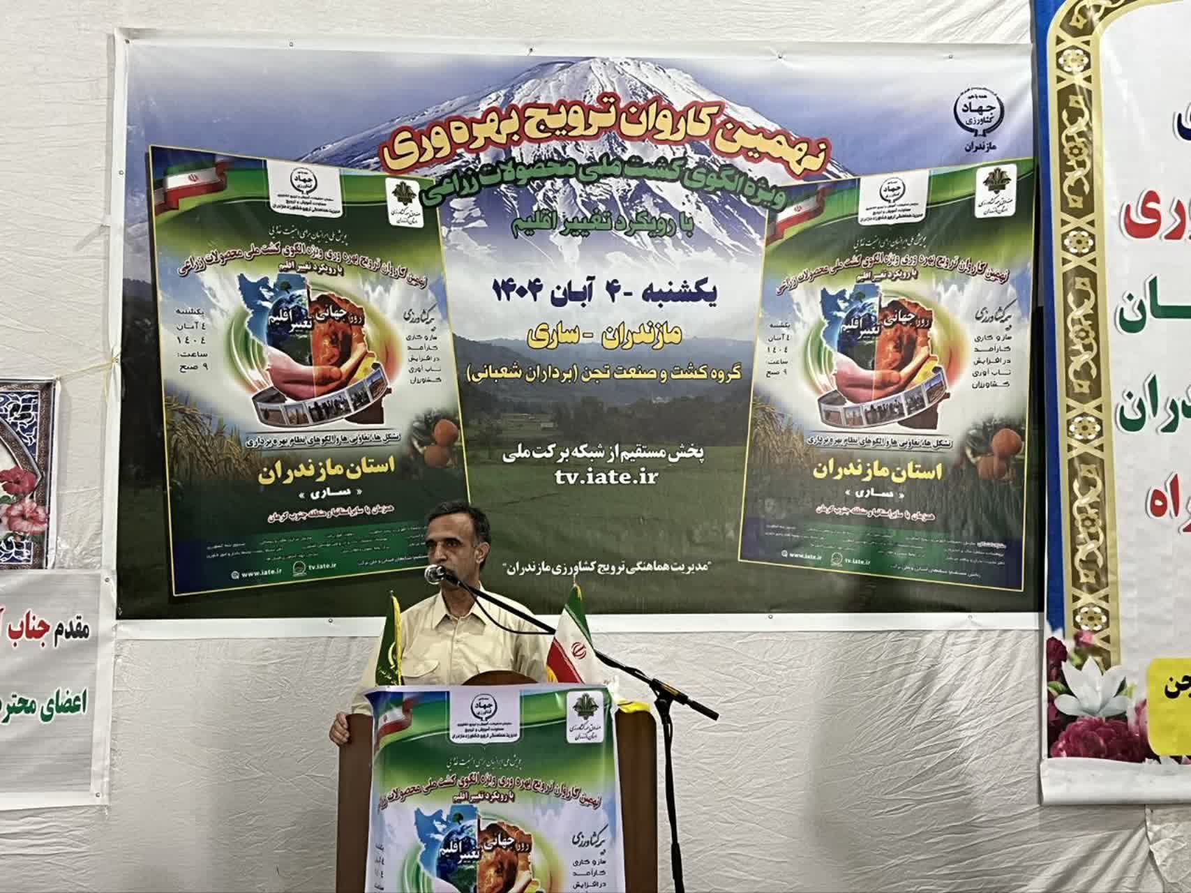 به گزارش روابط عمومی مرکز تحقیقات و آموزش کشاورزی و منابع طبیعی مازندران، همزمان با روز جهانی تغییر اقلیم نهمین کاروان ترویجی بهرهوری ویژه الگوی کشت ملی با محوریت تغییر اقلیم و با هدف ارتقاء بهرهوری، انتقال دانش فنی و ترویج الگوی کشت متناسب با شرایط اقلیمی جدید، روز یکشنبه ۴ آبان ۱۴۰۴ در سراسر استان مازندران برگزار شد.