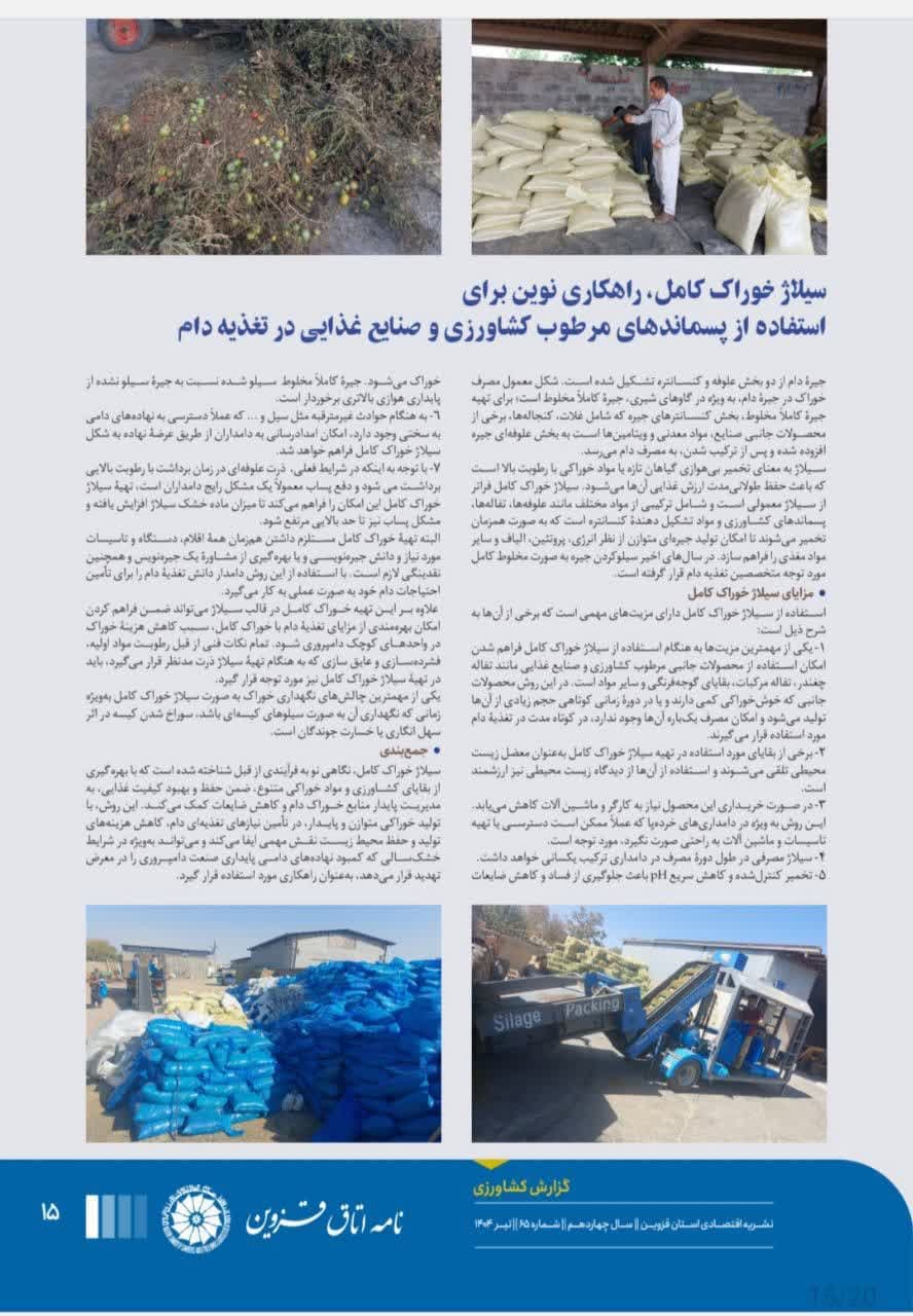 « سیلاژ خوراک کامل، راهکاری نوین برای استفاده از پسماندهای مرطوب کشاورزی و صنایع غذایی در تغذیه دام  » در این نشریه منتشر شد