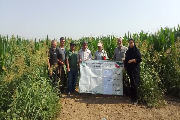محققان بخش تحقیقات گیاهپزشکی در پایش آفت کرم برگخوار پاییزه ذرت مزارع ذرت شهرستان البرز