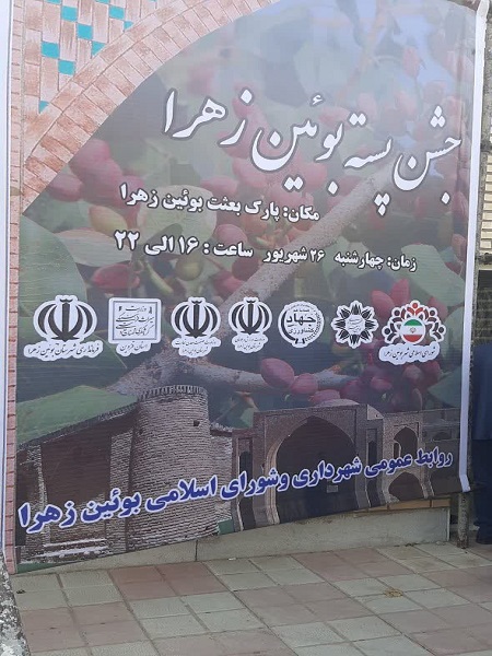 جشنواره پسته، طبق روال سال‌های اخیر در پارک بعثت بوئین زهرا و با حضور مسئولین ارشد شهرستان و استان برگزار شد
