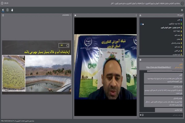 دکتر افشین یوسف گمرکچی محقق بخش تحقیقات خاک و آب مرکز تحقیقات کشاورزی قزوین ،در این وبینار یافته های علمی خود در زمینه "آبیاری بهره ور" را ارائه کردند