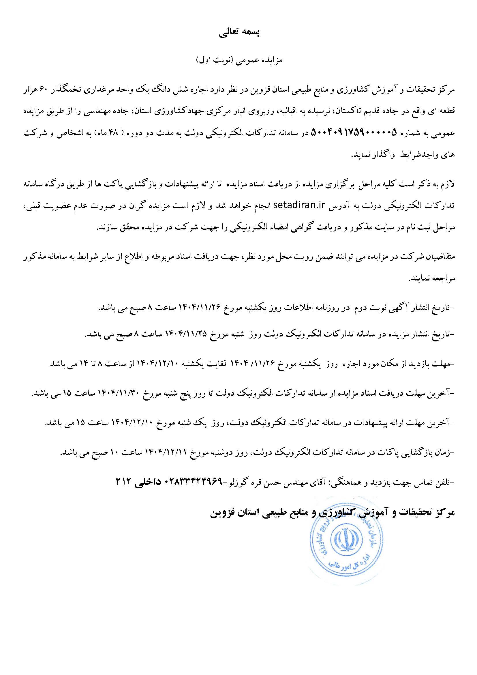 | محل دریافت اسناد | مرکز تحقیقات و آموزش کشاورزی و منابع طبیعی استان قزوین |