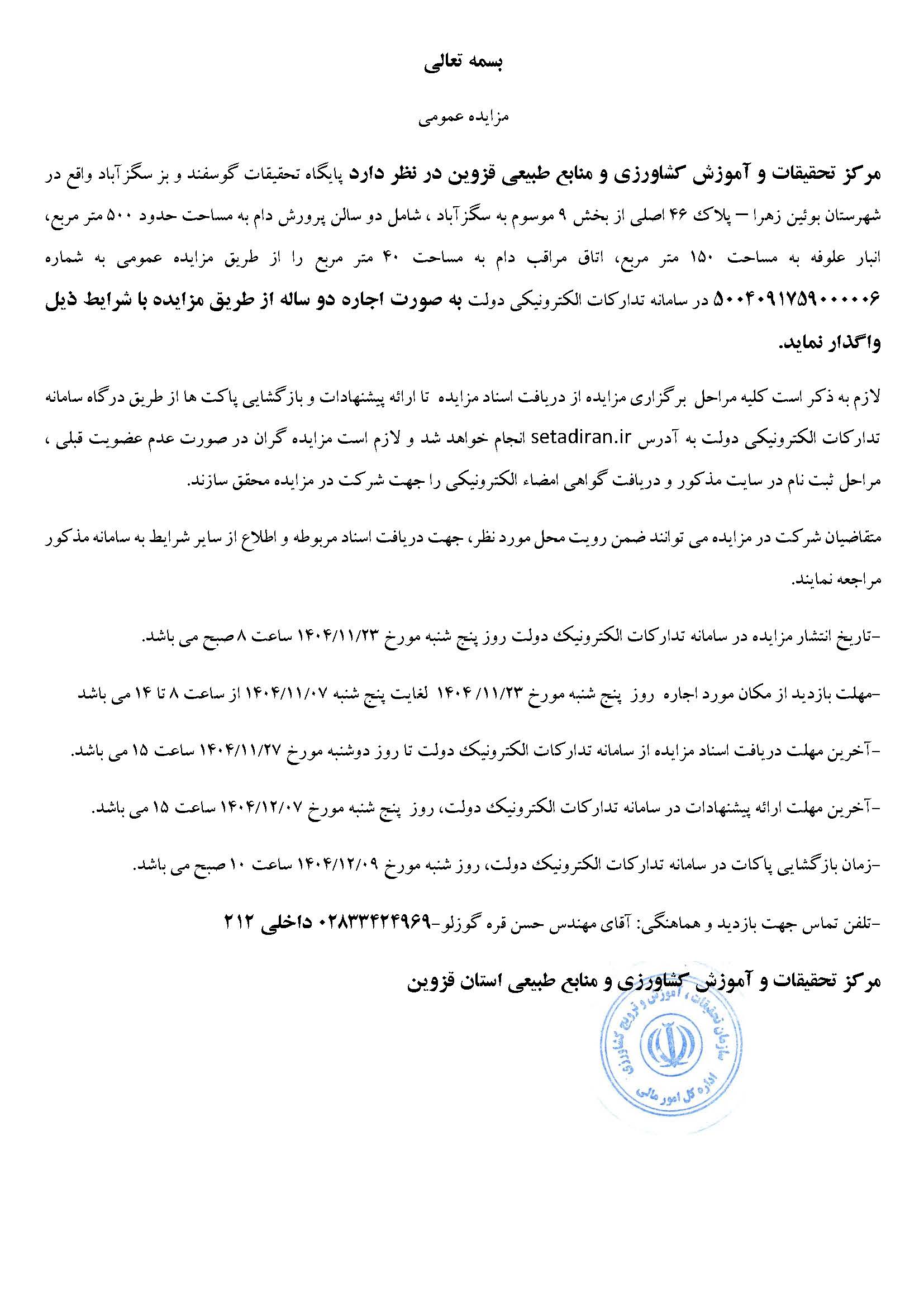 | محل دریافت اسناد | مرکز تحقیقات و آموزش کشاورزی و منابع طبیعی استان قزوین |