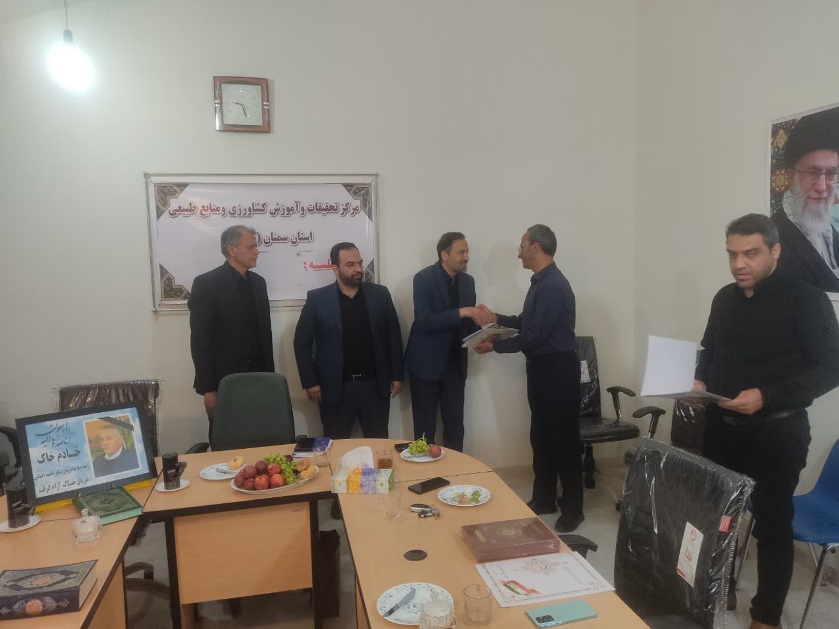 مراسم تکریم و معارفه رئیس اداره حراست مرکز تحقیقات و آموزش کشاورزی و منابع طبیعی استان سمنان (شاهرود) با حضور نمایندگان حراست سازمان تحقیقات، آموزش و ترویج کشاورزی، رئیس حراست سازمان جهاد کشاورزی استان، مسئول حراست مدیریت جهاد کشاورزی شهرستان شاهرود و سرپرست، معاون و مسئولین مرکز تحقیقات و آموزش کشاورزی شاهرود برگزار شد.
