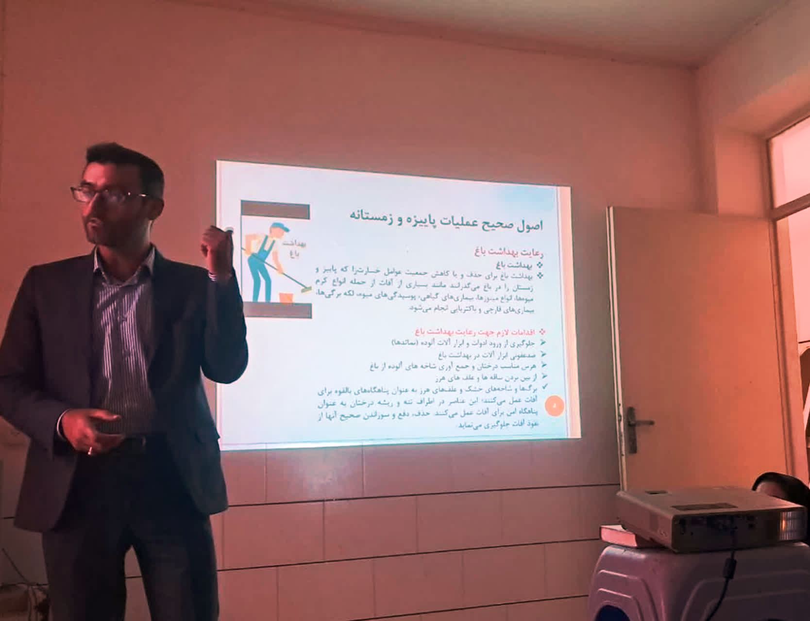 همچنین در این کارگاه در مورد نحوه شناسایی آفات و بیماریهای مهم باغات منطقه و نحوه مبارزه مطالبی ارائه شد.