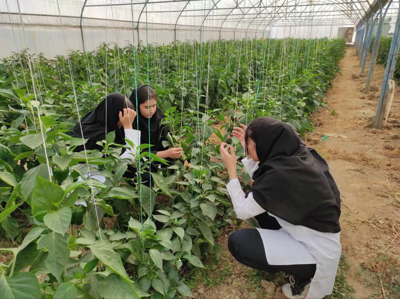 بازدید هنرجویان دختر هنرستان تحت پوشش مرکز از گلخانه تولید فلفلدلمهای