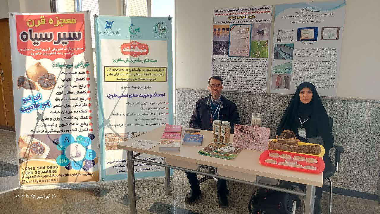 به گزارش روابطعمومی مرکز تحقیقات و آموزش کشاورزی و منابع طبیعی استان سمنان (شاهرود)، در این رویداد شرکتهای دانشبنیان و هستههای فناور مستقر در دهکده فناوری شاهوار با برپایی غرفه اختصاصی، به معرفی دستاوردها، محصولات و خدمات فناورانه خود پرداخته و ضمن پاسخگویی به بازدیدکنندگان، فرصت مناسبی برای ارائه توانمندیها و گسترش تعامل با فعالان صنعتی، دانشگاهی و سرمایهگذاران فراهم کردند.