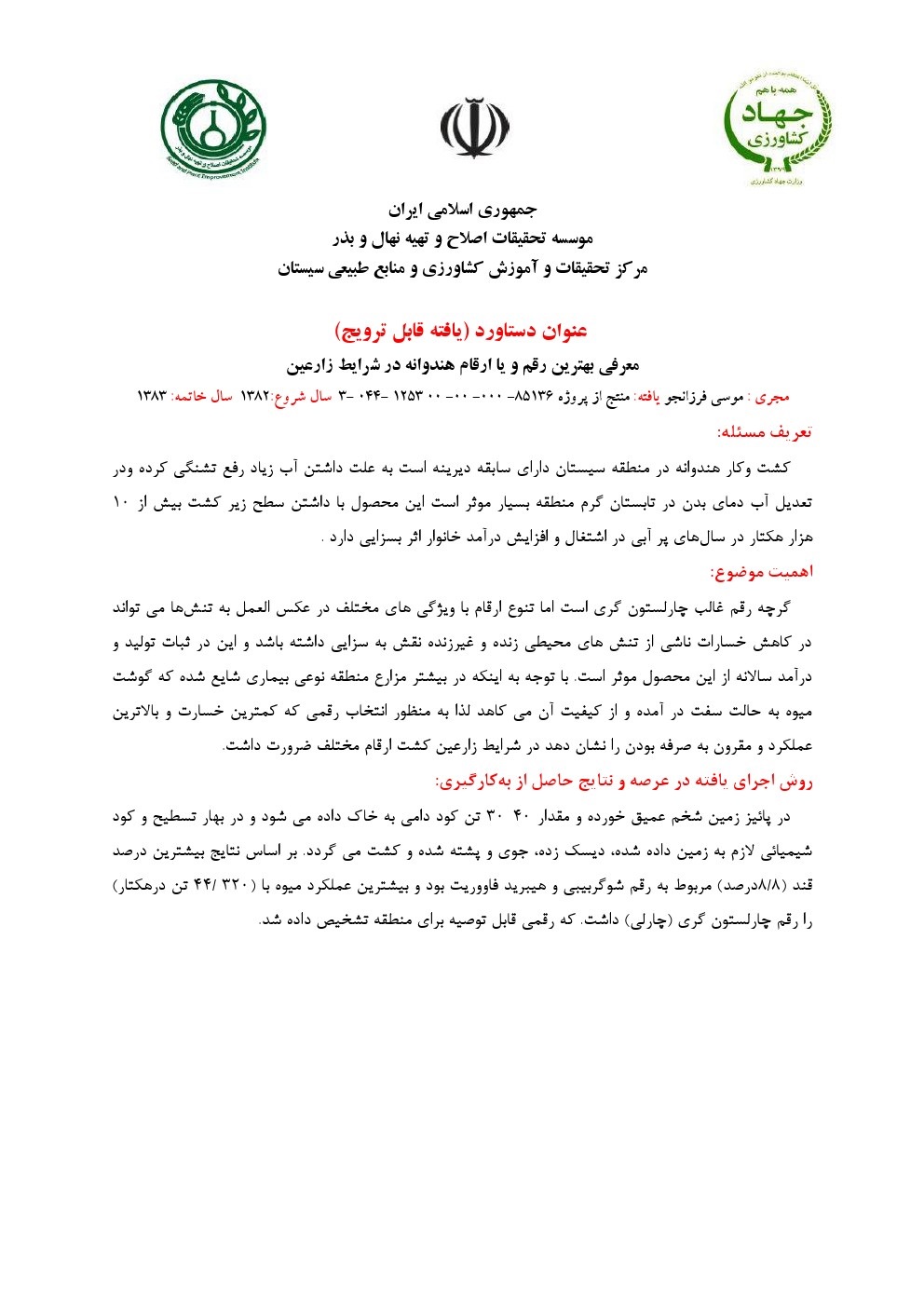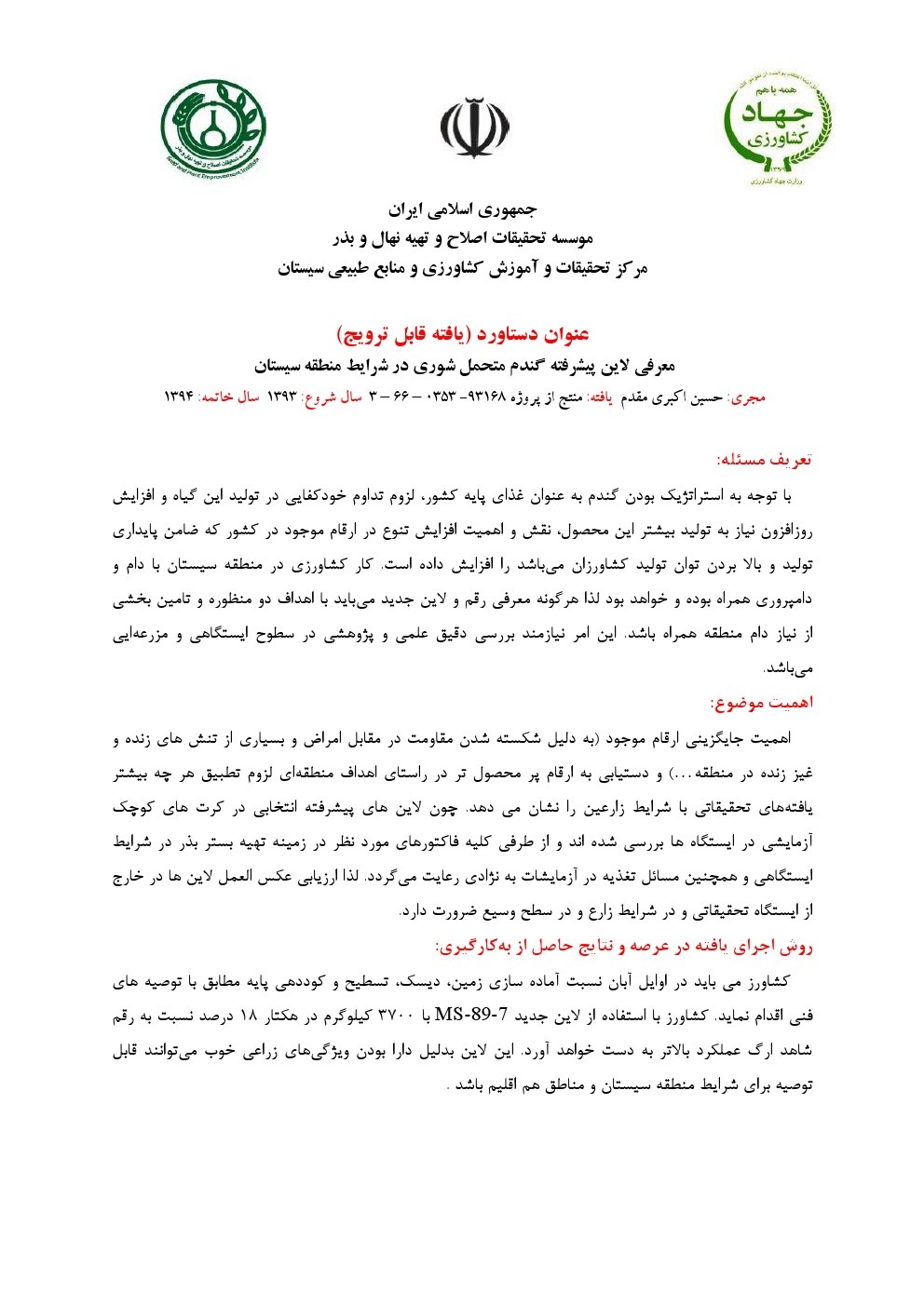 معرفی لاین پیشرفته گندم متحمل شوری در شرایط منطقه سیستان