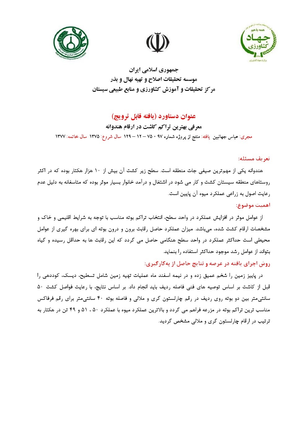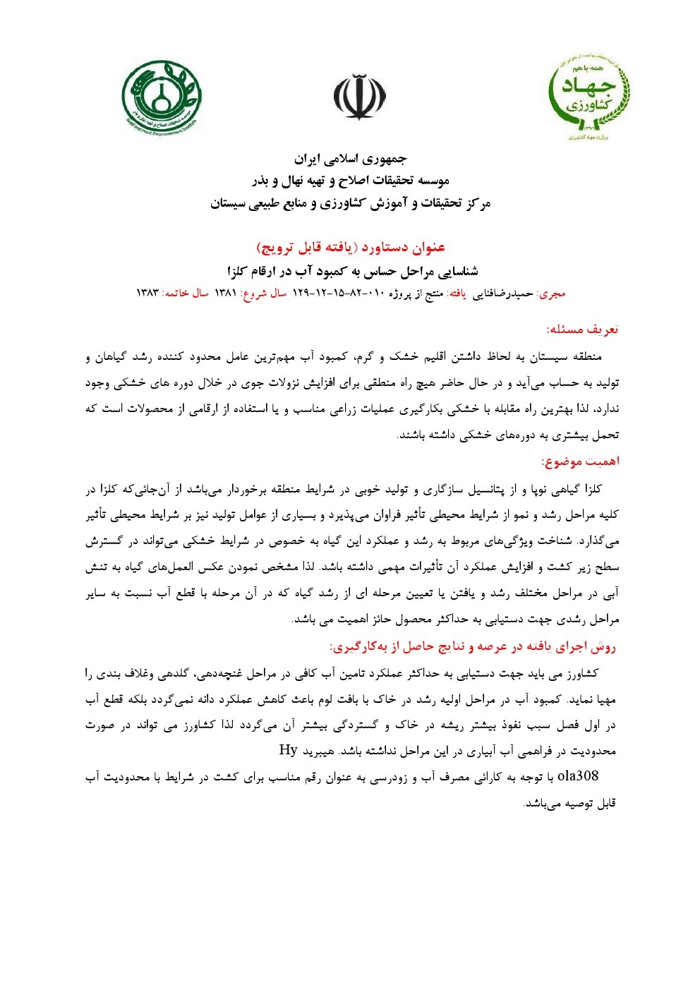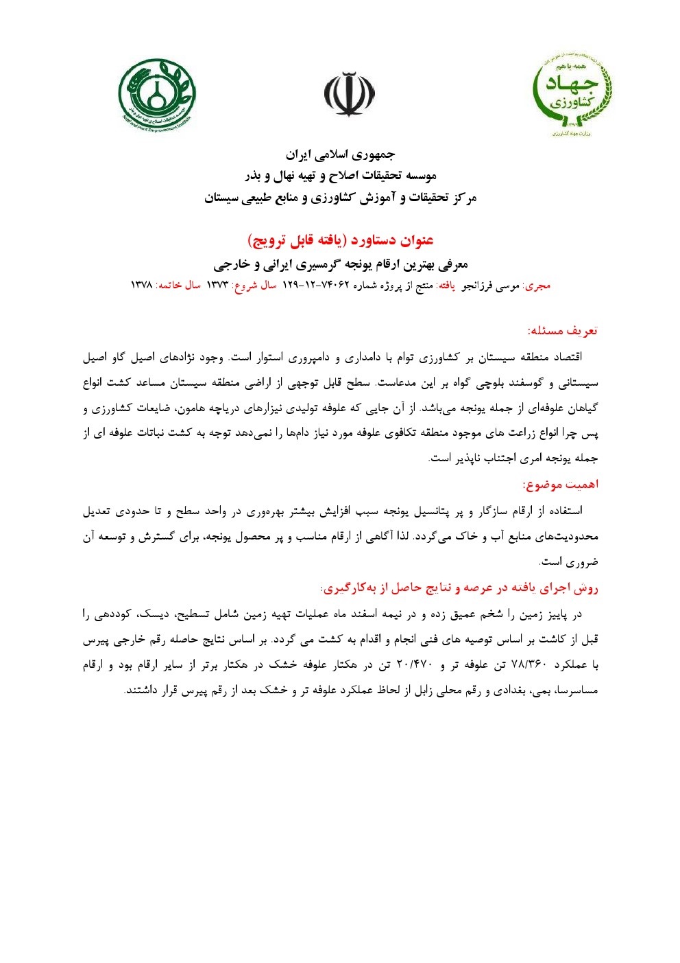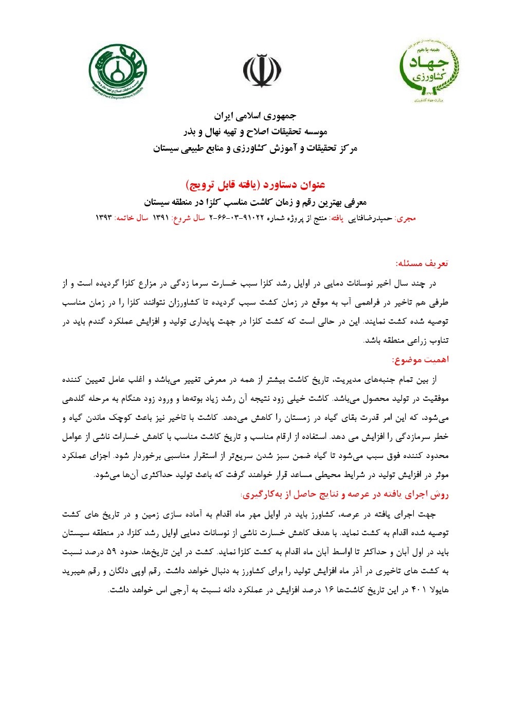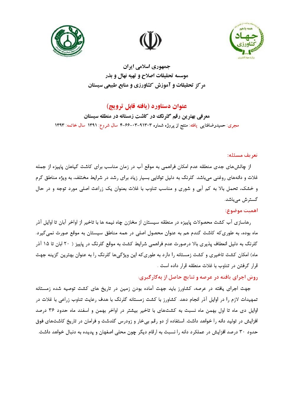 معرفی بهترین رقم و یا ارقام گلرنگ برای کشت پاییزه در منطقه سیستان
