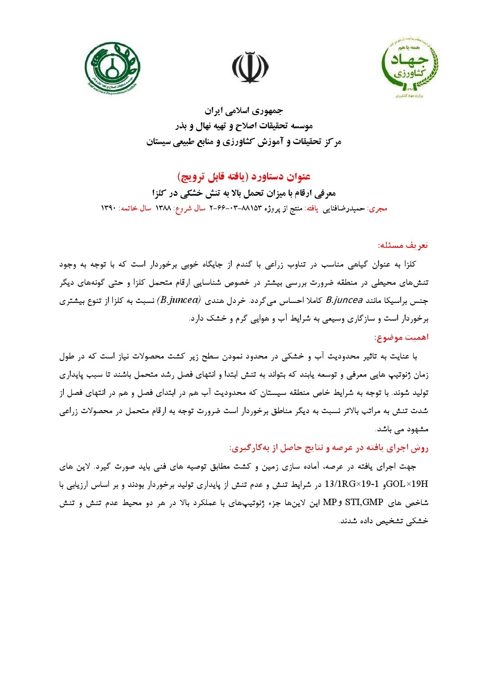 معرفی ارقام با میزان تحمل بالا به تنش خشکی در کلزا