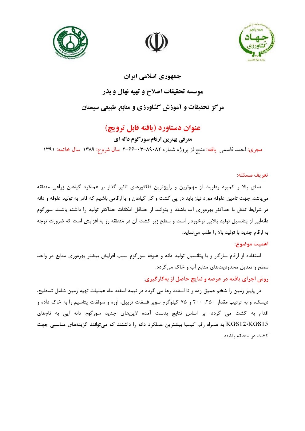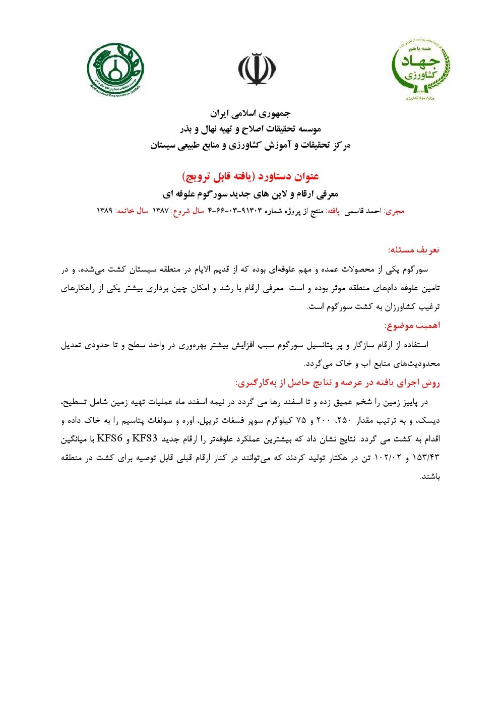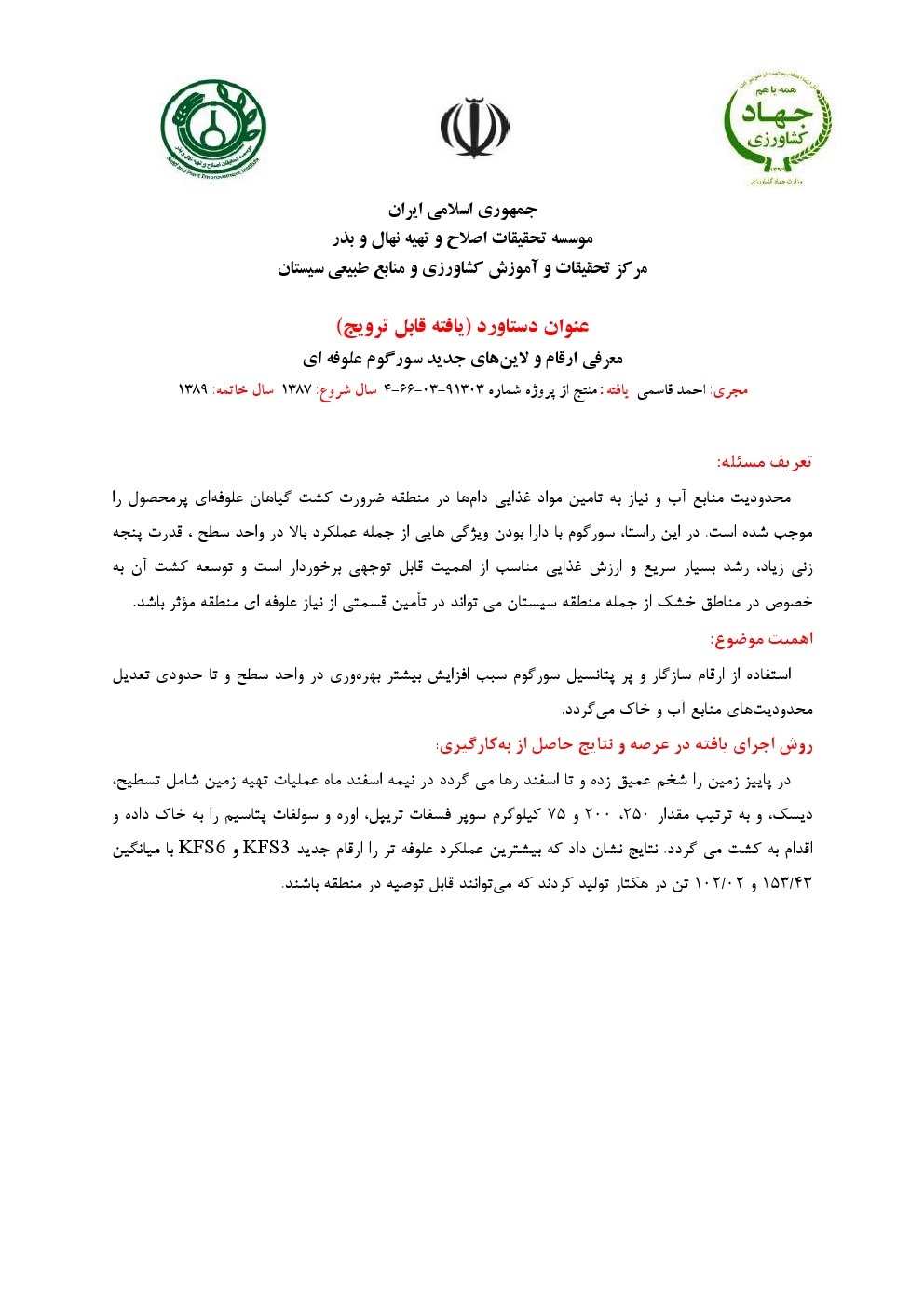 معرفی ارقام و لاین های جدید سورگوم علوفه ای
