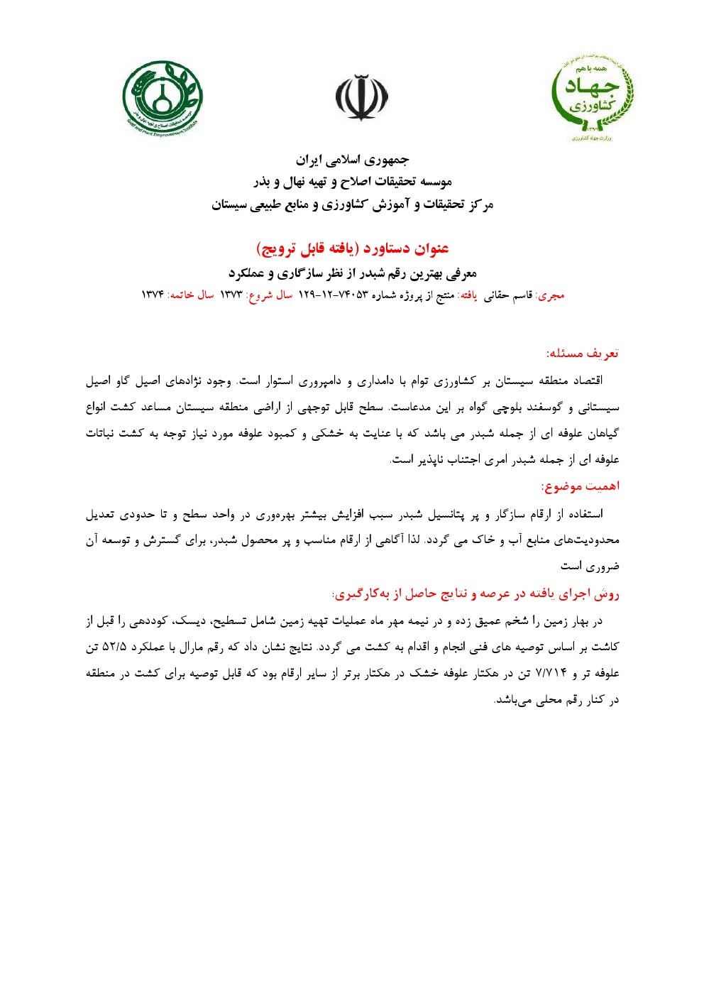 تعیین بهترین ارقام تجارتی چغدر قند در منطقه سیستان