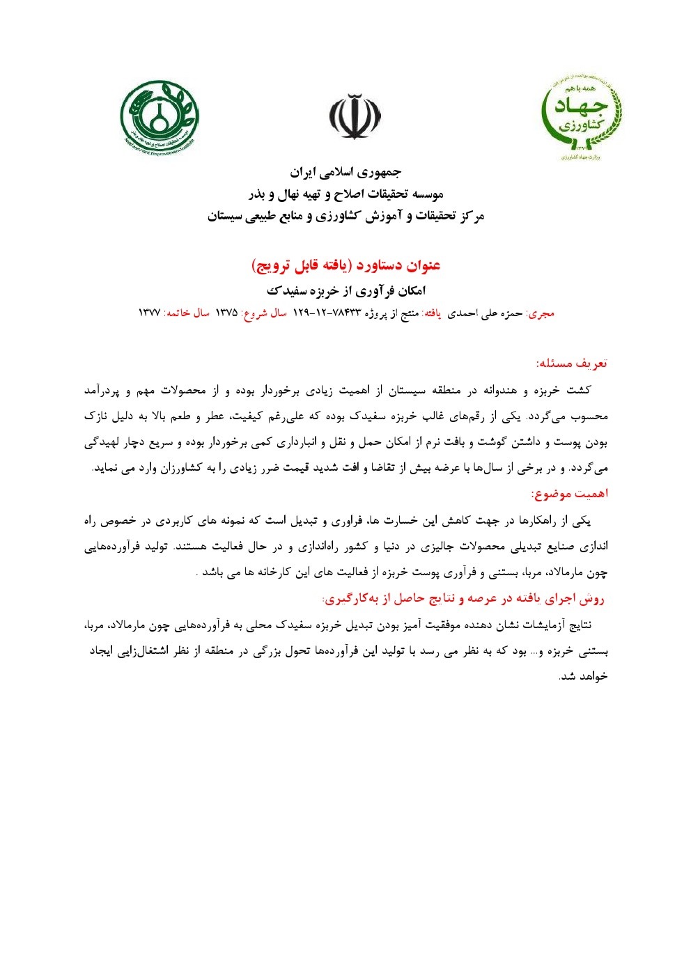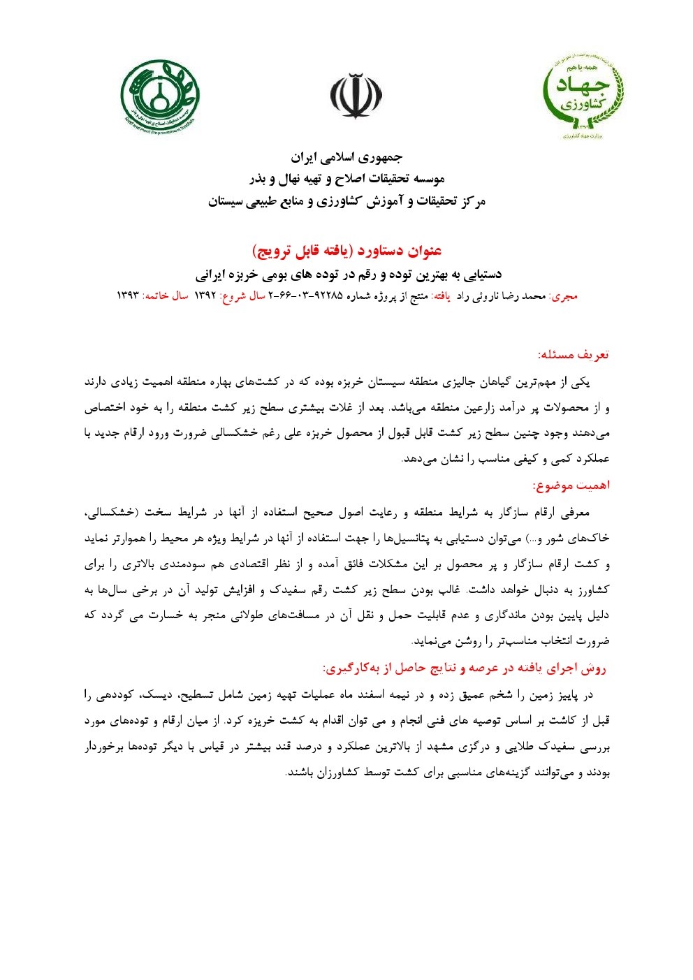 دستیابی به بهترین توده و رقم در توده های بومی خربزه ایرانی