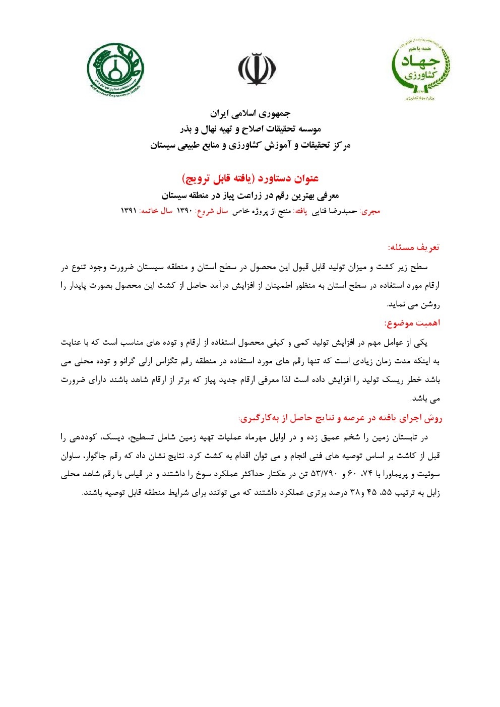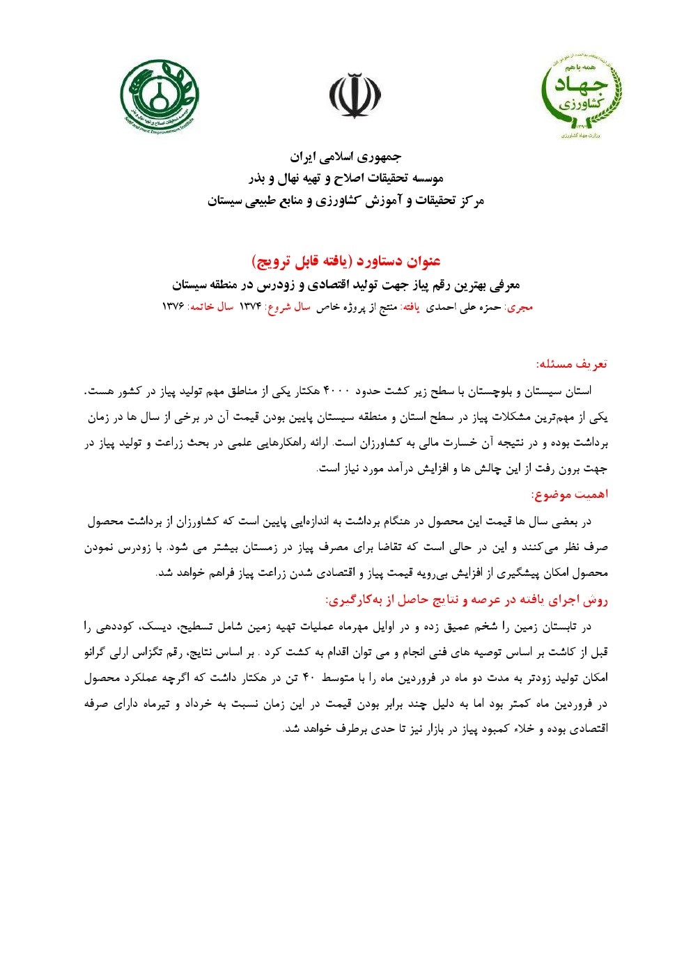 معرفی بهترین رقم پیاز جهت تولید اقتصادی و زودرس در منطقه سیستان