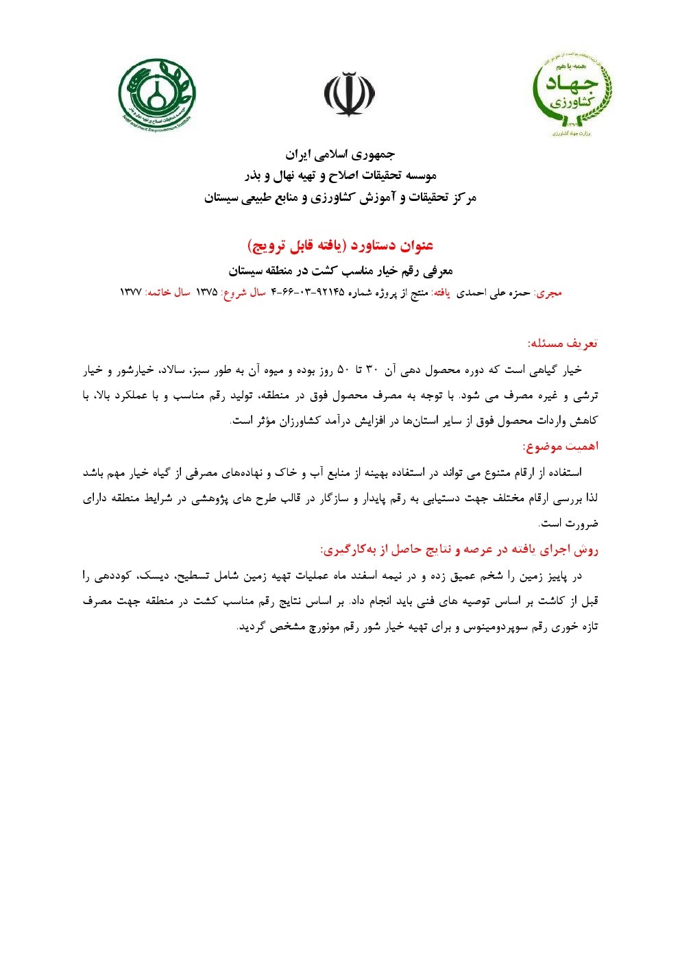 معرفی رقم خیار مناسب کشت در منطقه سیستان