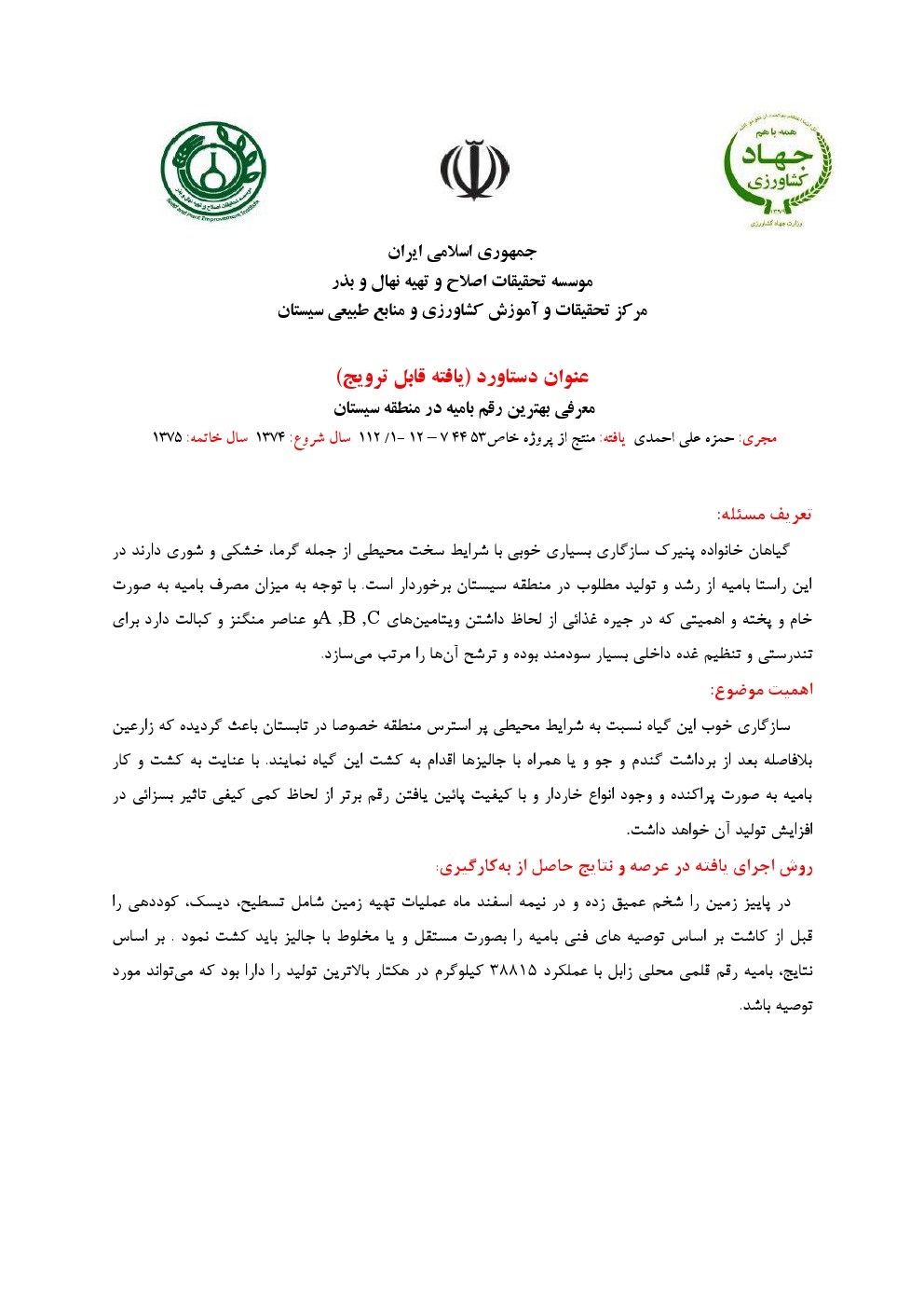 معرفی بهترین رقم بامیه در منطقه سیستان