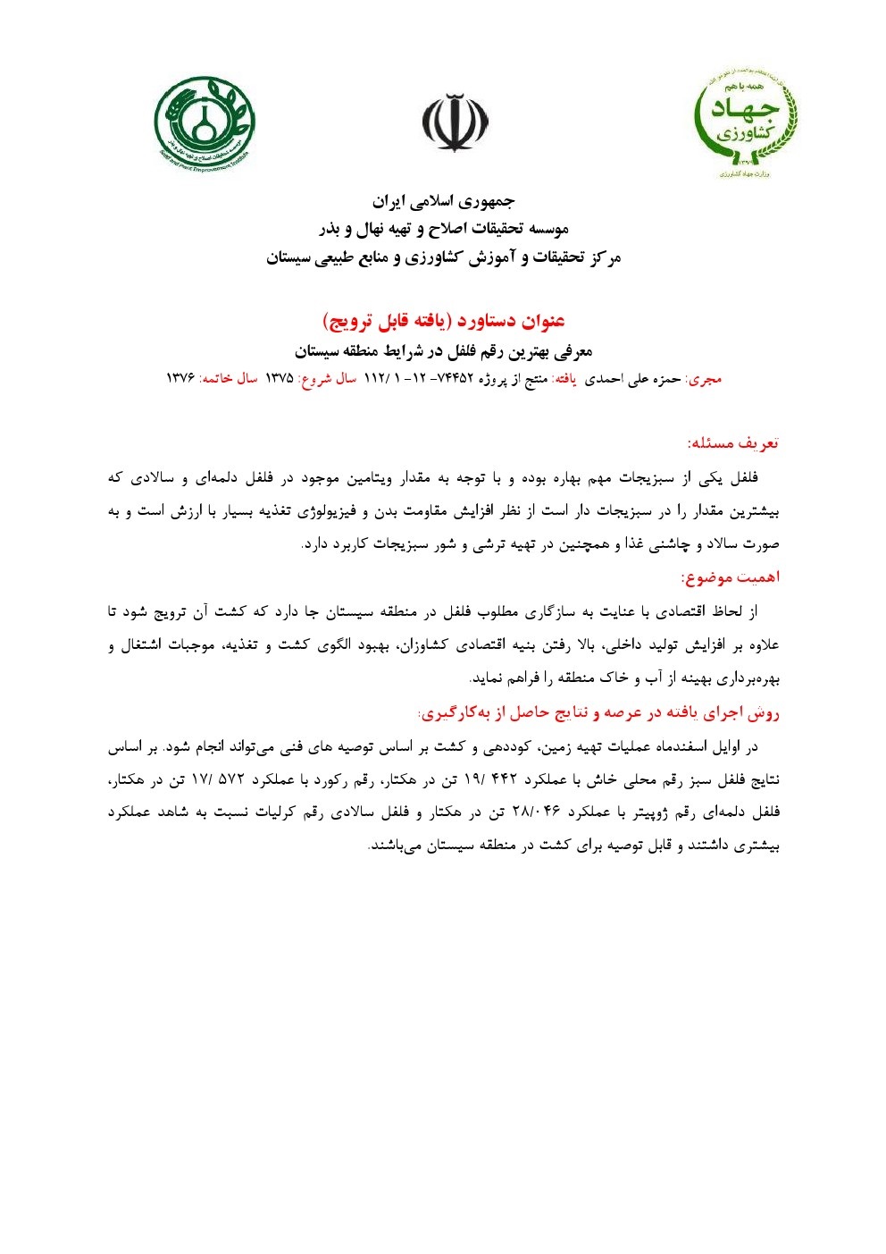 معرفی بهترین رقم فلفل در شرایط منطقه سیستان