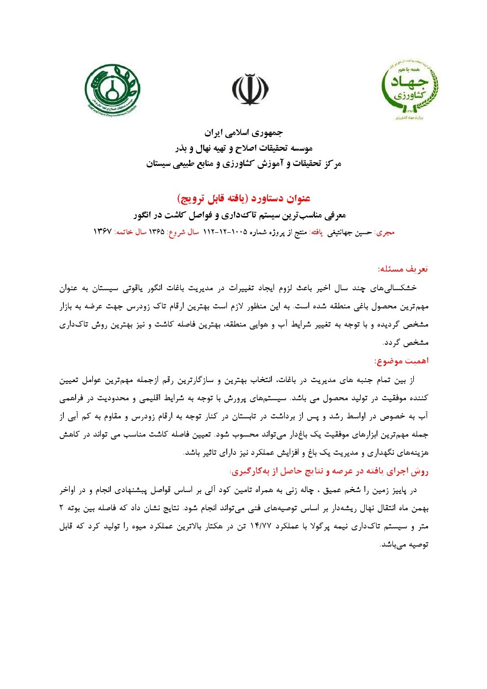 تحقیقات اصلاح و تهیه نهال و بذر