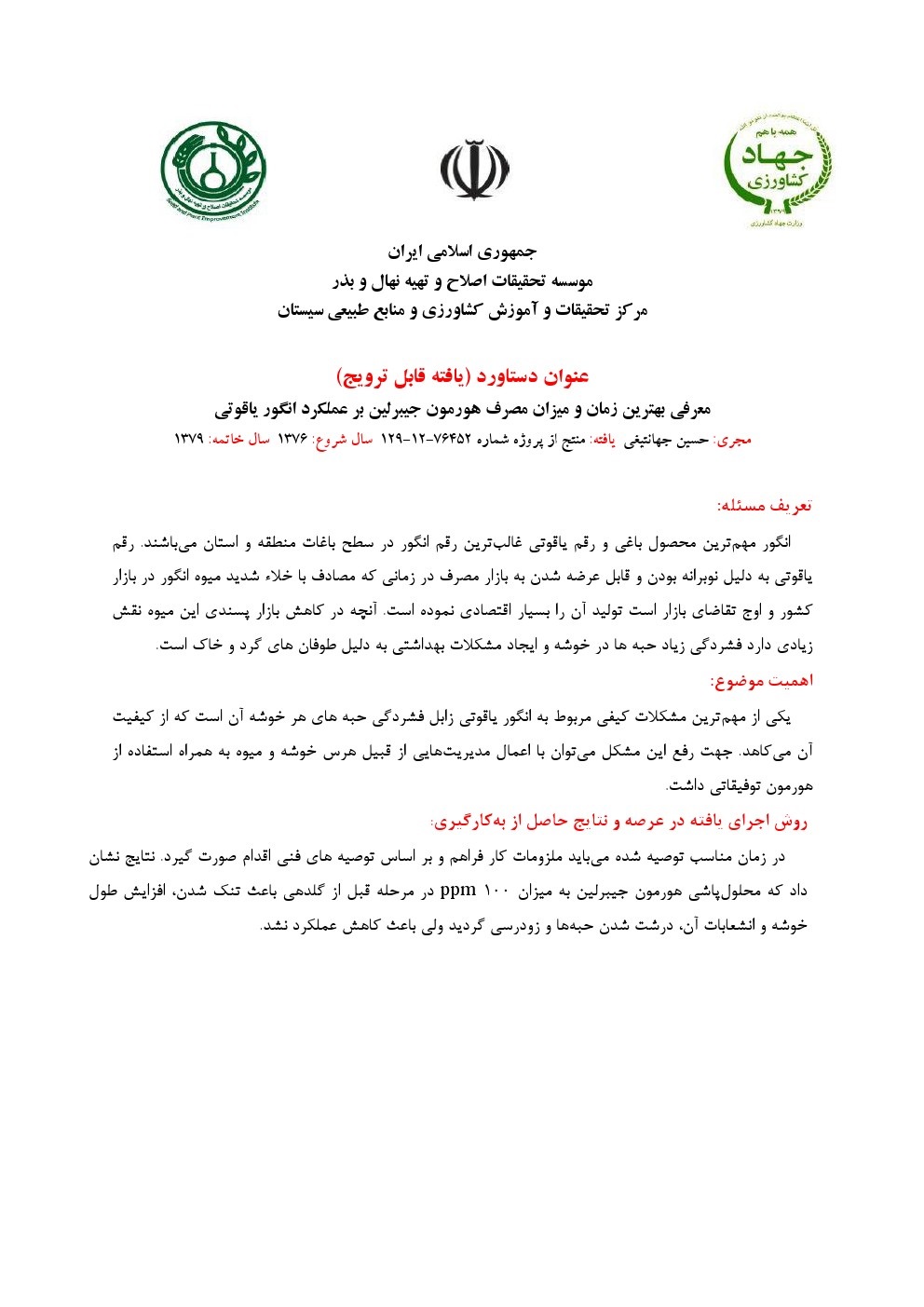 معرفی بهترین زمان و میزان مصرف هورمون جیبرلین بر عملکرد انگور یاقوتی