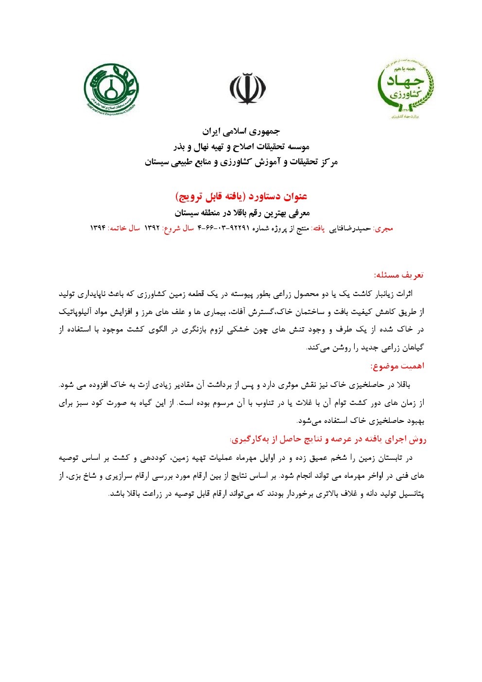 معرفی بهترین رقم باقلا در منطقه سیستان