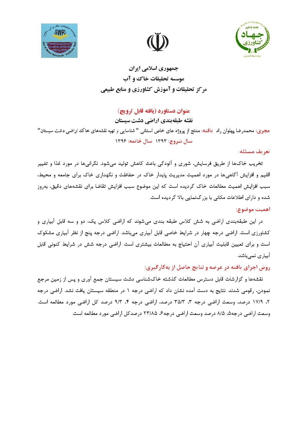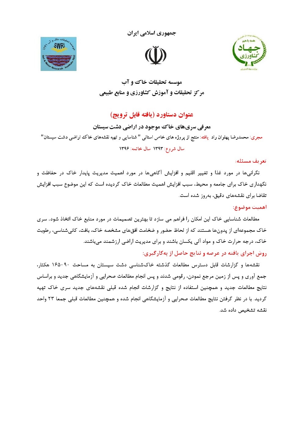 معرفی سری‌های خاک موجود در اراضی دشت سیستان
