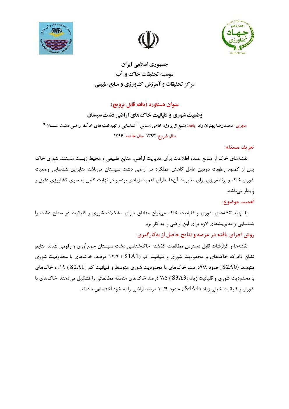 وضعیت شوری و قلیائیت خاک‌های اراضی دشت سیستان