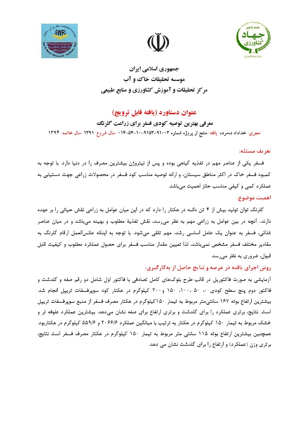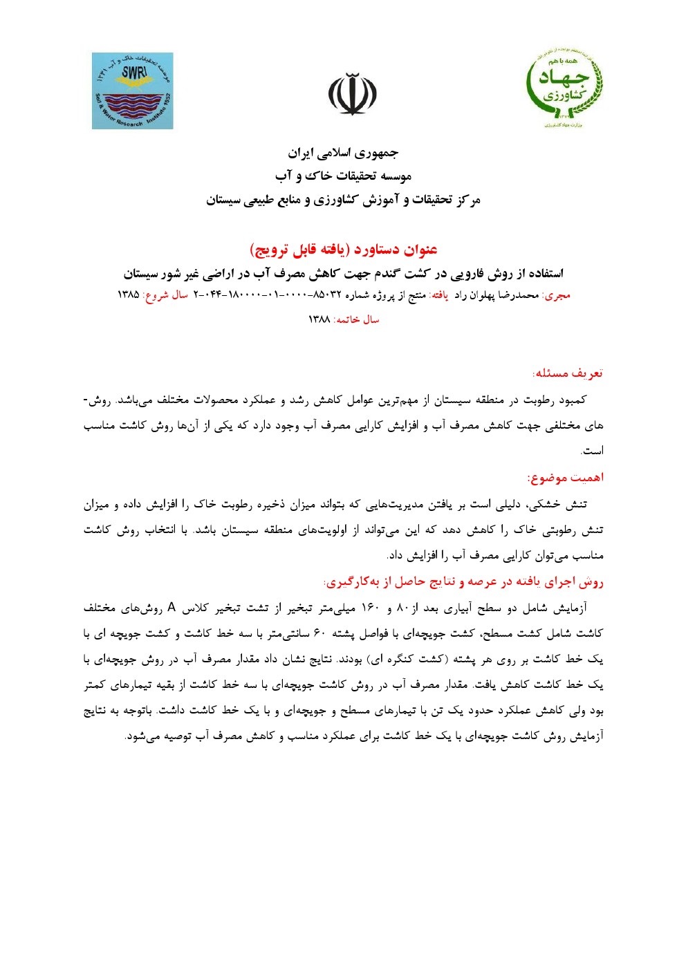 استفاده از روش فارویی در کشت گندم جهت کاهش مصرف آب در اراضی غیر شور سیستان