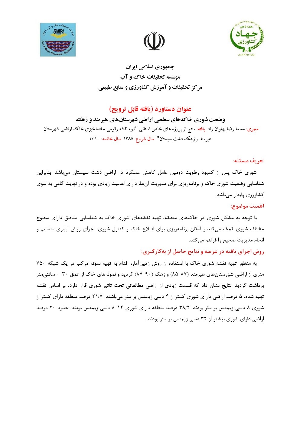 وضعیت شوری خاک­های سطحی اراضی شهرستان­های هیرمند و زهک