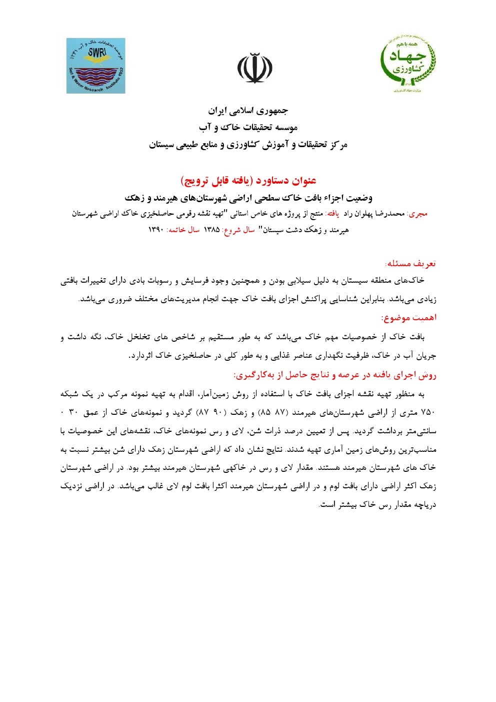 وضعیت اجزاء بافت خاک سطحی اراضی شهرستان­های هیرمند و زهک