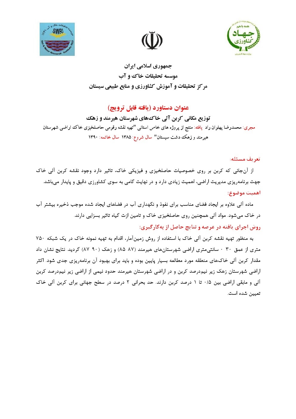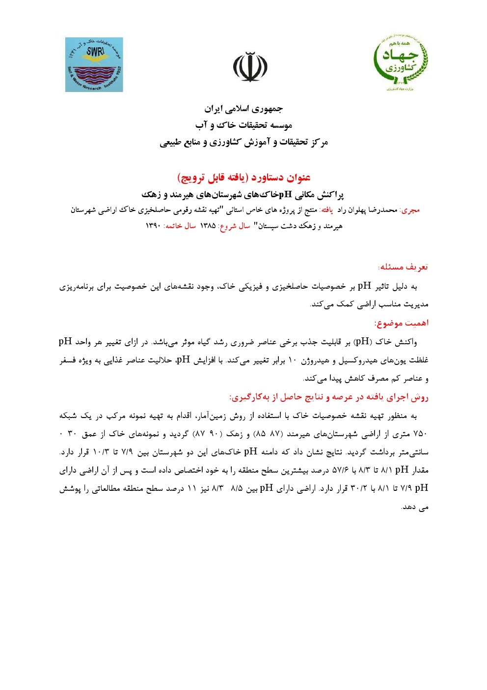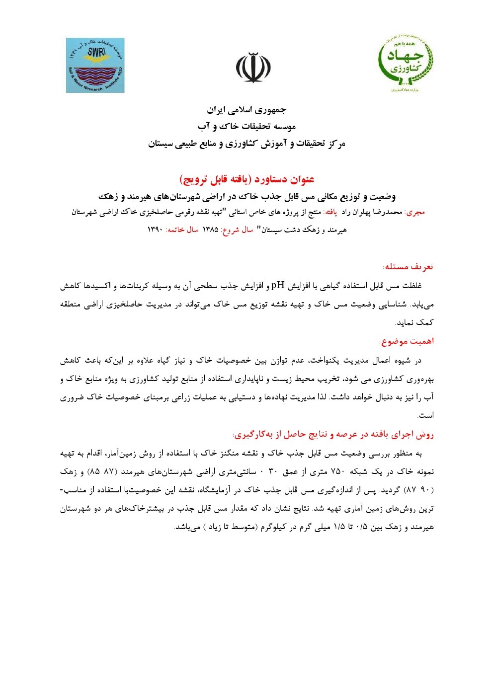 وضعیت و پراکنش مکانی روی قابل جذب خاک در اراضی شهرستان­های هیرمند و زهک