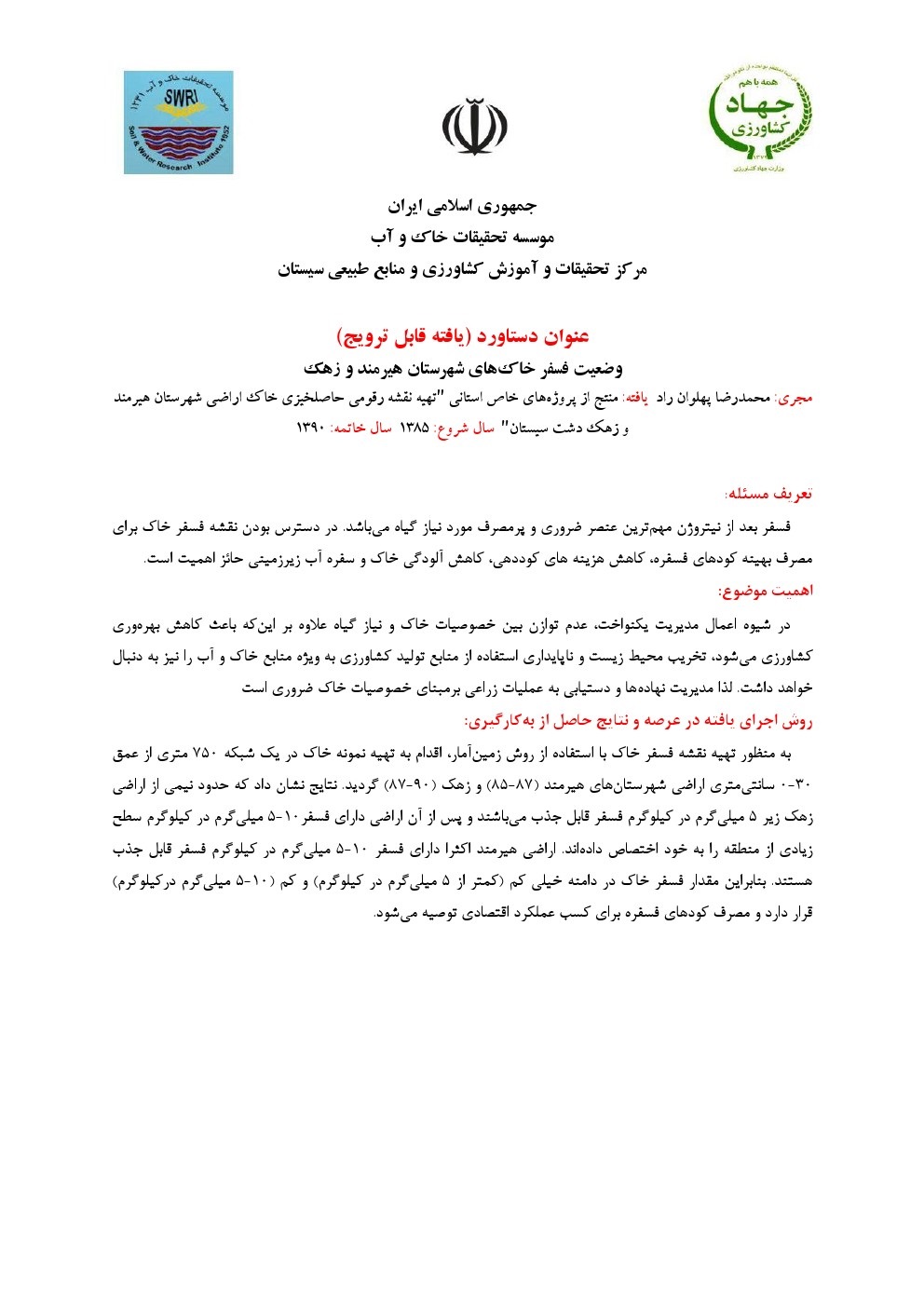 وضعیت فسفر خاک­های شهرستان هیرمند و زهک