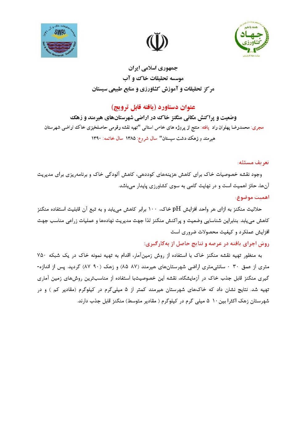 وضعیت و پراکنش مکانی منگنز خاک در اراضی شهرستان­های هیرمند و زهک