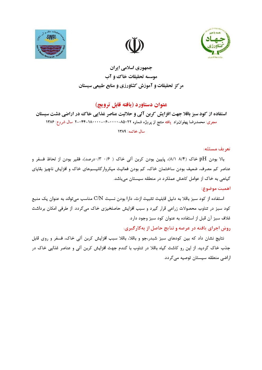 استفاده از کود سبز باقلا جهت افزایش کربن آلی و حلالیت عناصر غذایی خاک در اراضی دشت سیستان