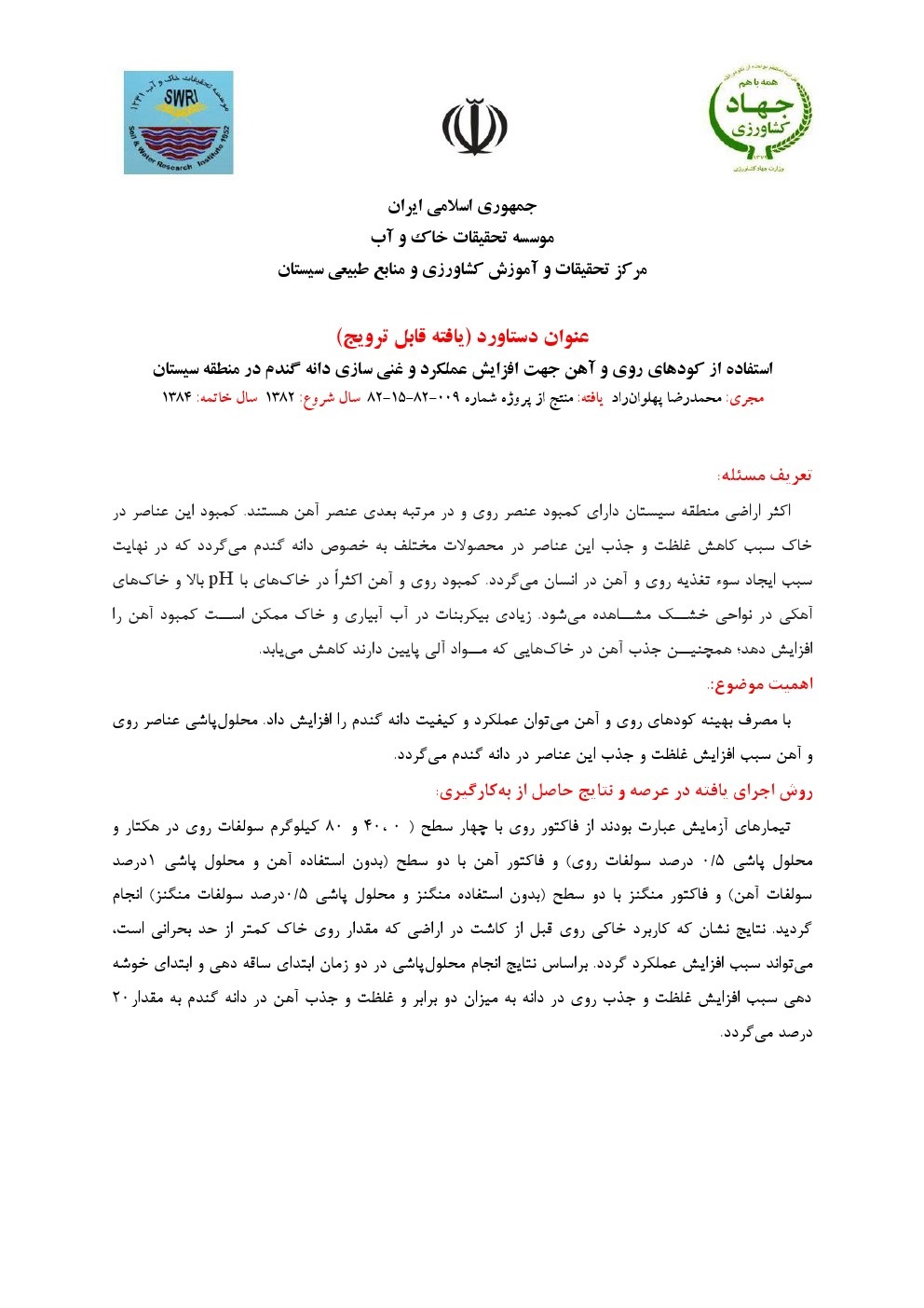 استفاده از کودهای روی و آهن جهت افزایش عملکرد و غنی سازی دانه گندم در منطقه سیستان