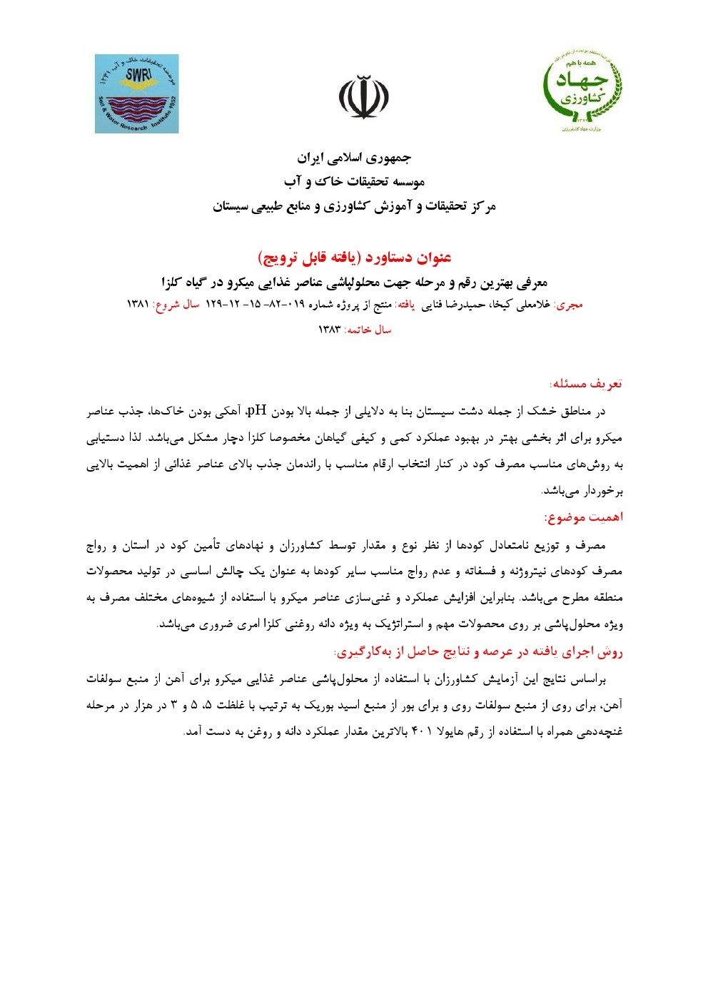 معرفی رژیم آبیاری مناسب (دور و عمق آبیاری) در زراعت کلزا در منطقه سیستان