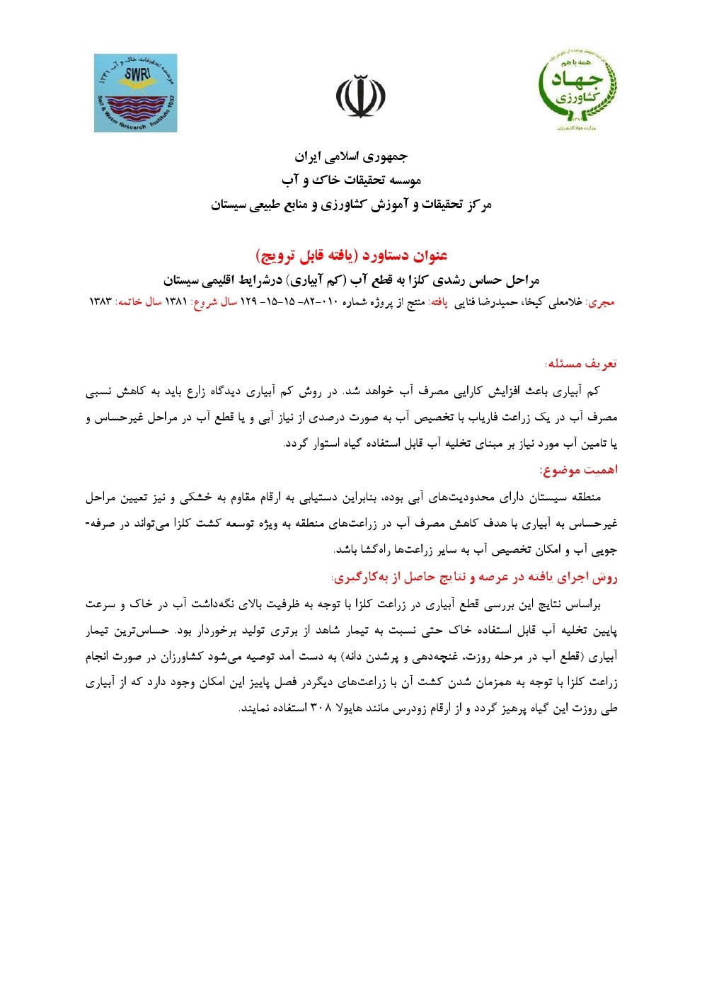 مراحل حساس رشدی کلزا به قطع آب (کم آبیاری) درشرایط اقلیمی سیستان