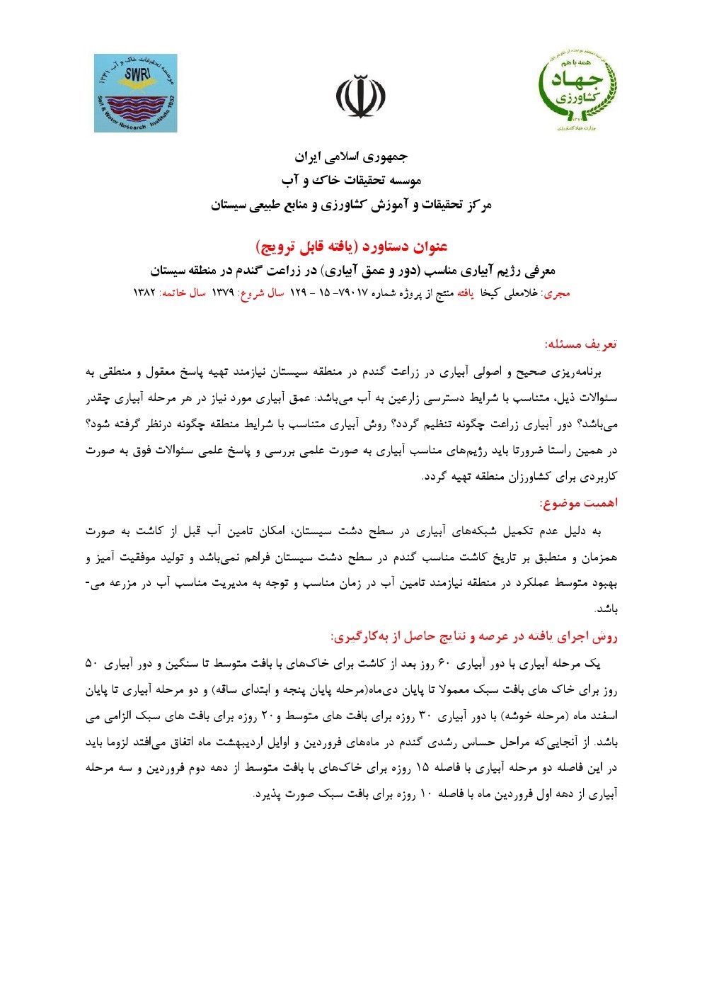 معرفی رژیم آبیاری مناسب (دور و عمق آبیاری) در زراعت گندم در منطقه سیستان