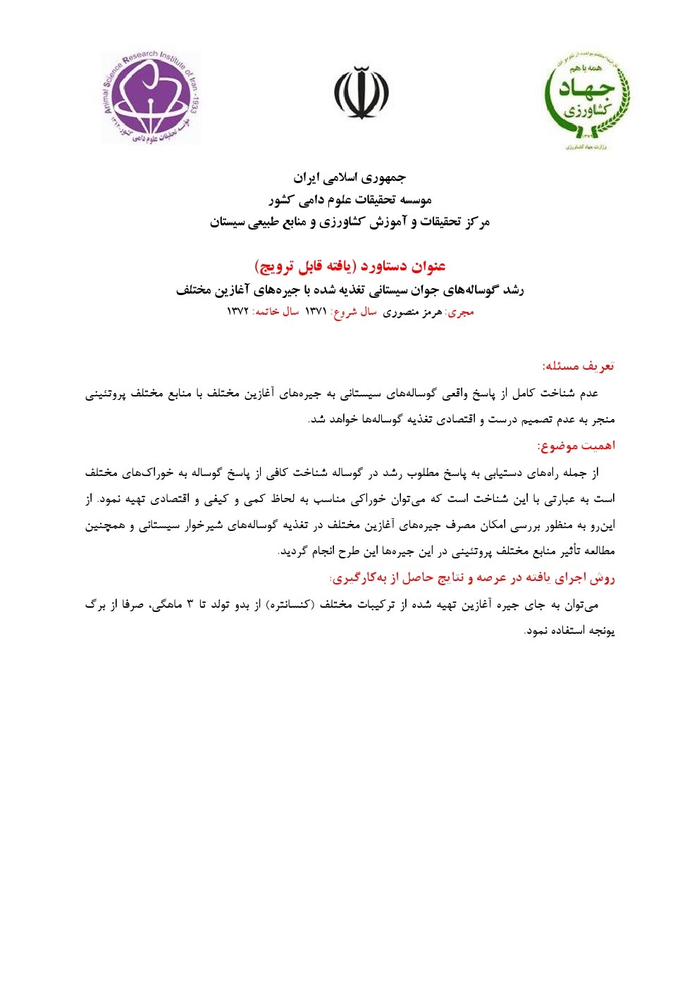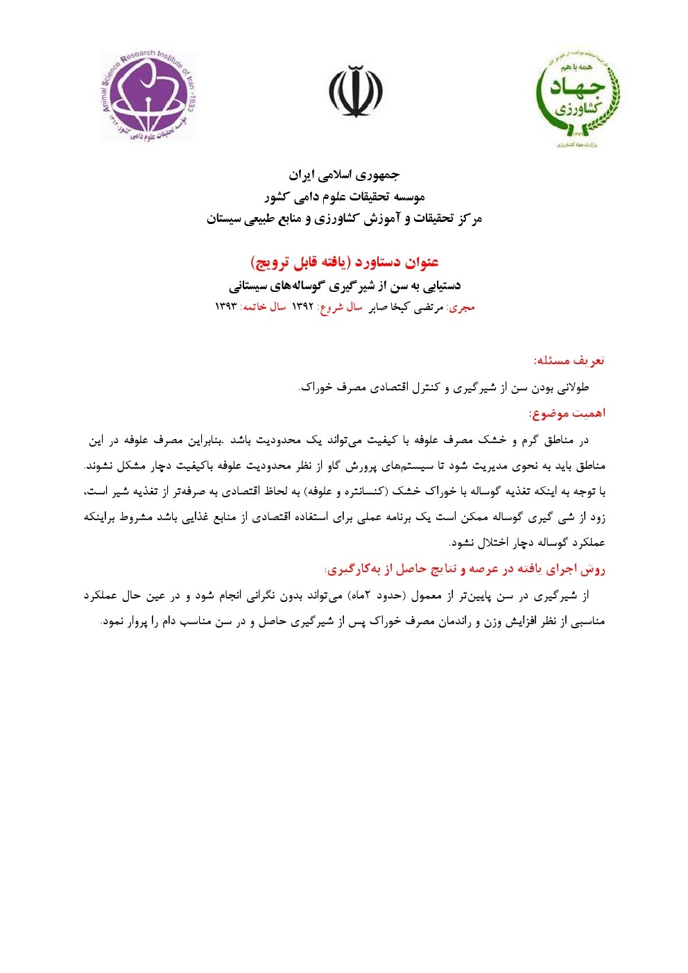 دستیابی به سن از شیرگیری گوساله های سیستانی |