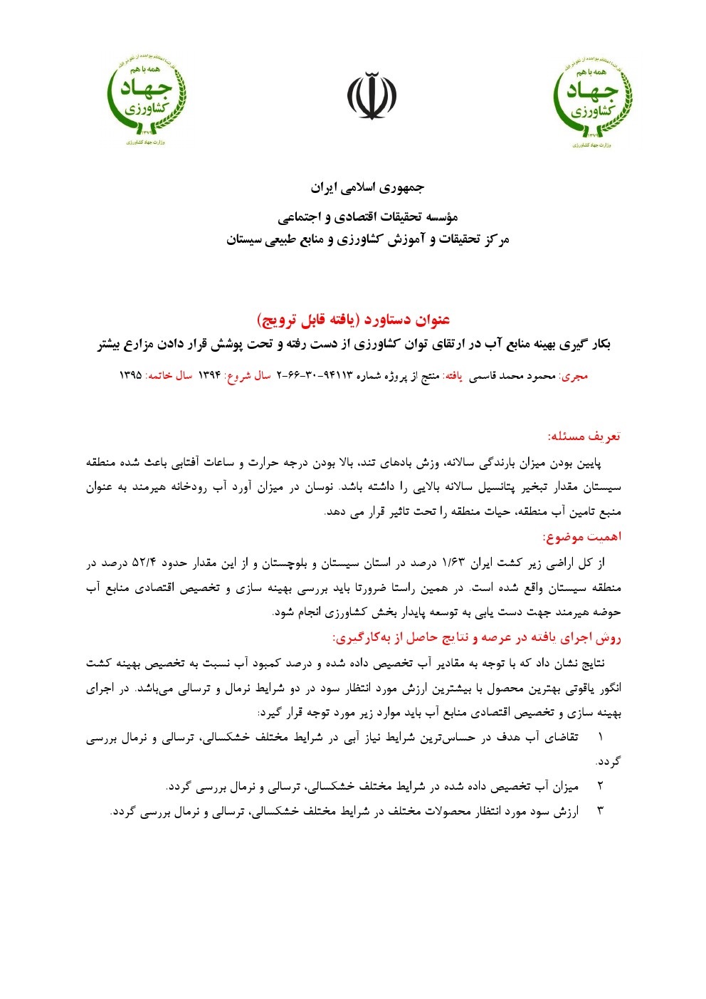 بکارگیری بهینه منابع آب در ارتقای توان کشاورزی از دست رفته و تحت پوشش قرار دادن مزارع بیشتر