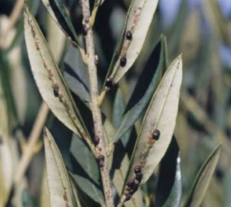 کاهش شدید توان فتوسنتزی درختان زیتون، ضعف عمومی گیاه و افزایش احتمال خشک شدن سرشاخههای جوان، ریزش گسترده برگها در فصل گرم سال، کاهش کیفیت و عملکرد میوههای زیتون از اثرات و پیامدهای آن می باشد.